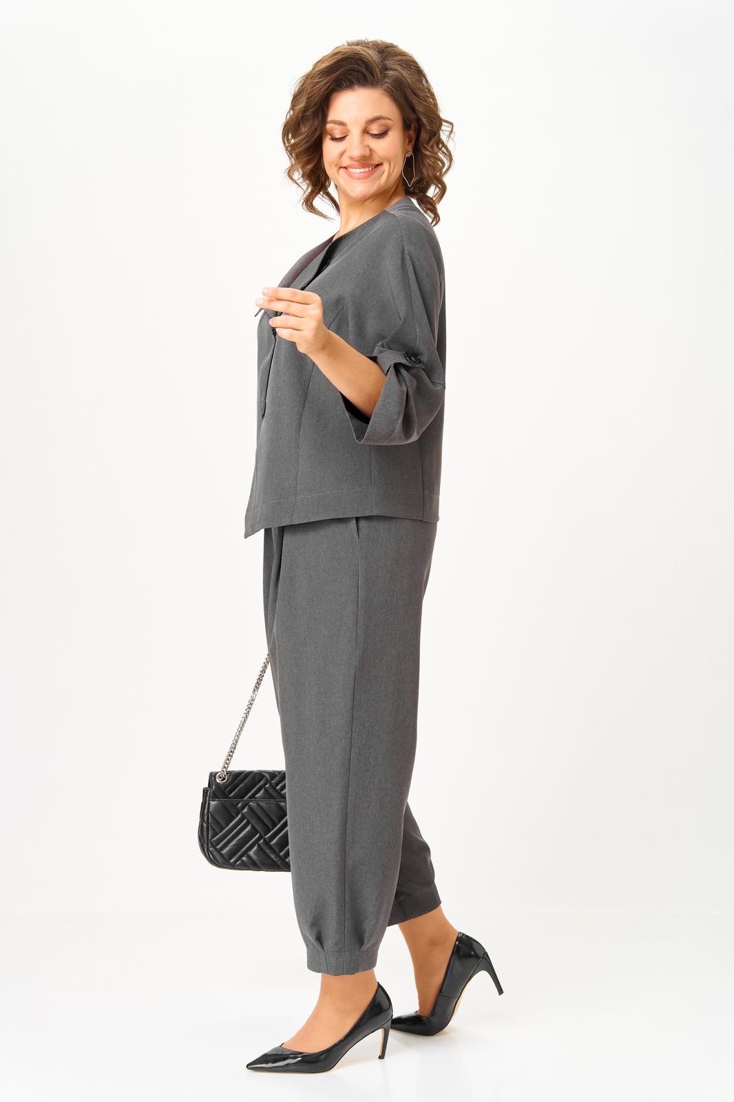 Универсальный костюм, который выглядит дорого и современно, но при этом дарит комфорт и лёгкость. Его можно носить как комплект или по отдельности: жакет с асимметричной застёжкой и акцентными пуговицами легко сочетается с джинсами, а брюки свободного кроя идеально смотрятся с блузой или футболкой.