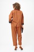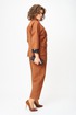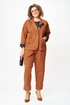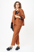 Костюм, который подчеркивает вашу уверенность и женственность. Плотный трикотаж с добавлением нейлона делает его пластичным и износостойким — он держит форму и смотрится дорого в любой ситуации. Богатый карамельный оттенок словно создан, чтобы добавить тепла и выразительности в повседневность, а изящная отделка текстилем и контрастные детали на лацкане и манжетах превращают образ в по-настоящему уникальный.