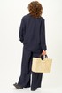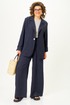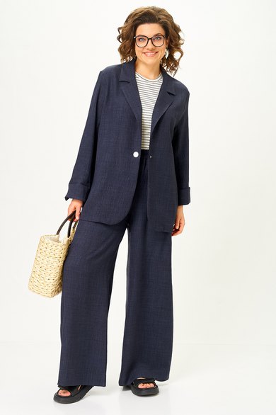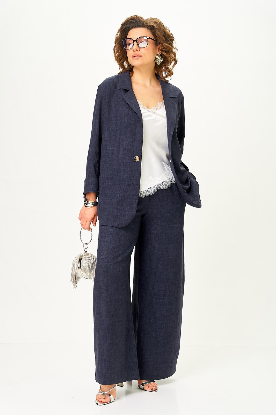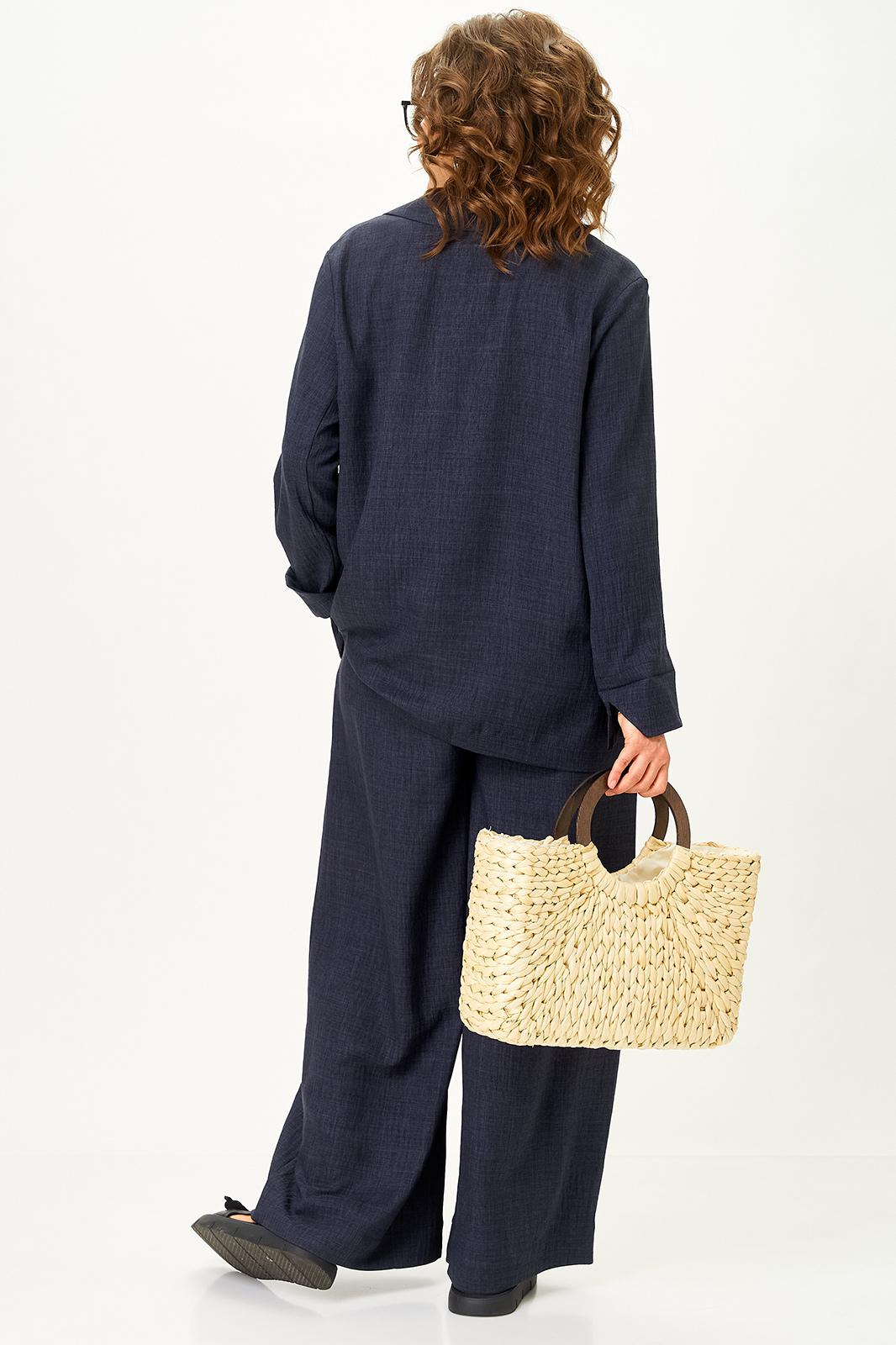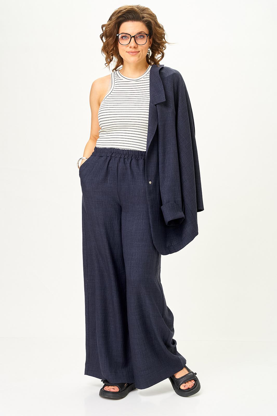 Современный женственный костюм из легкой струящейся ткани. Насыщенный цвет ночного неба выглядит дорого и легко вписывается в гардероб, позволяя создавать как повседневные, так и более нарядные образы.