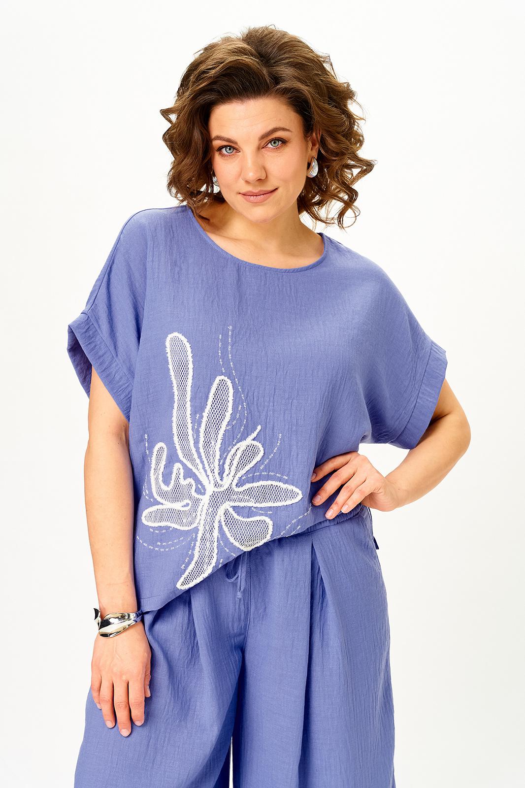 Топ свободного силуэта не сковывает движения и украшен выразительной вышивкой, которая делает образ акцентным и запоминающимся.