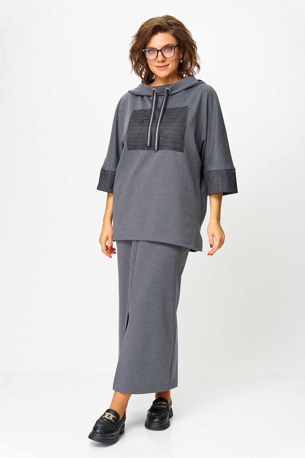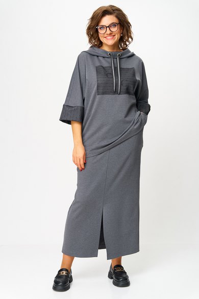 Этот комплект создан для женщин, которые ценят комфорт и стиль в каждом дне. Свободное худи с капюшоном и декоративной вставкой легко вписывается в динамичный ритм жизни, а юбка миди с разрезом добавляет женственности и свободы движений.