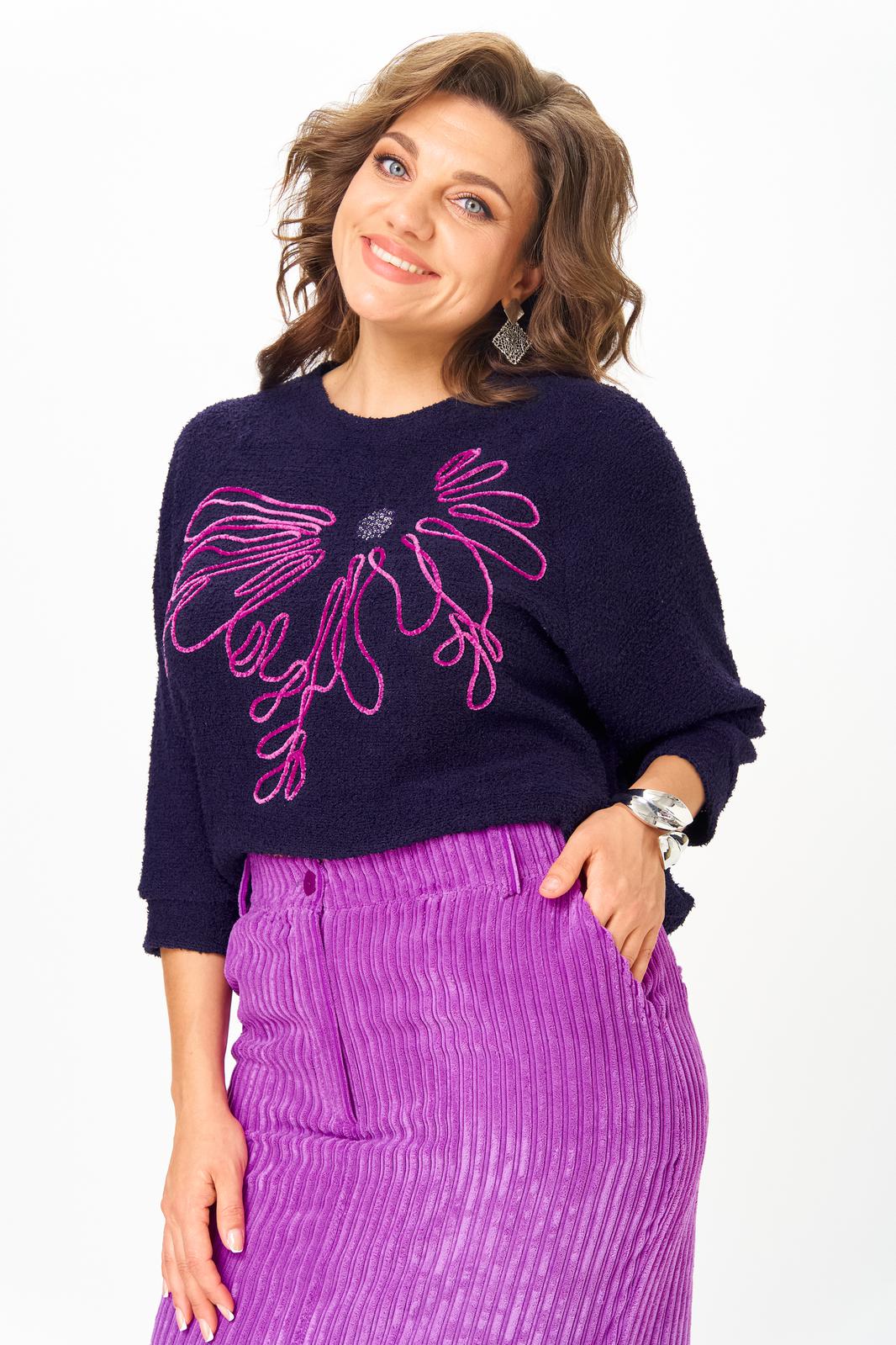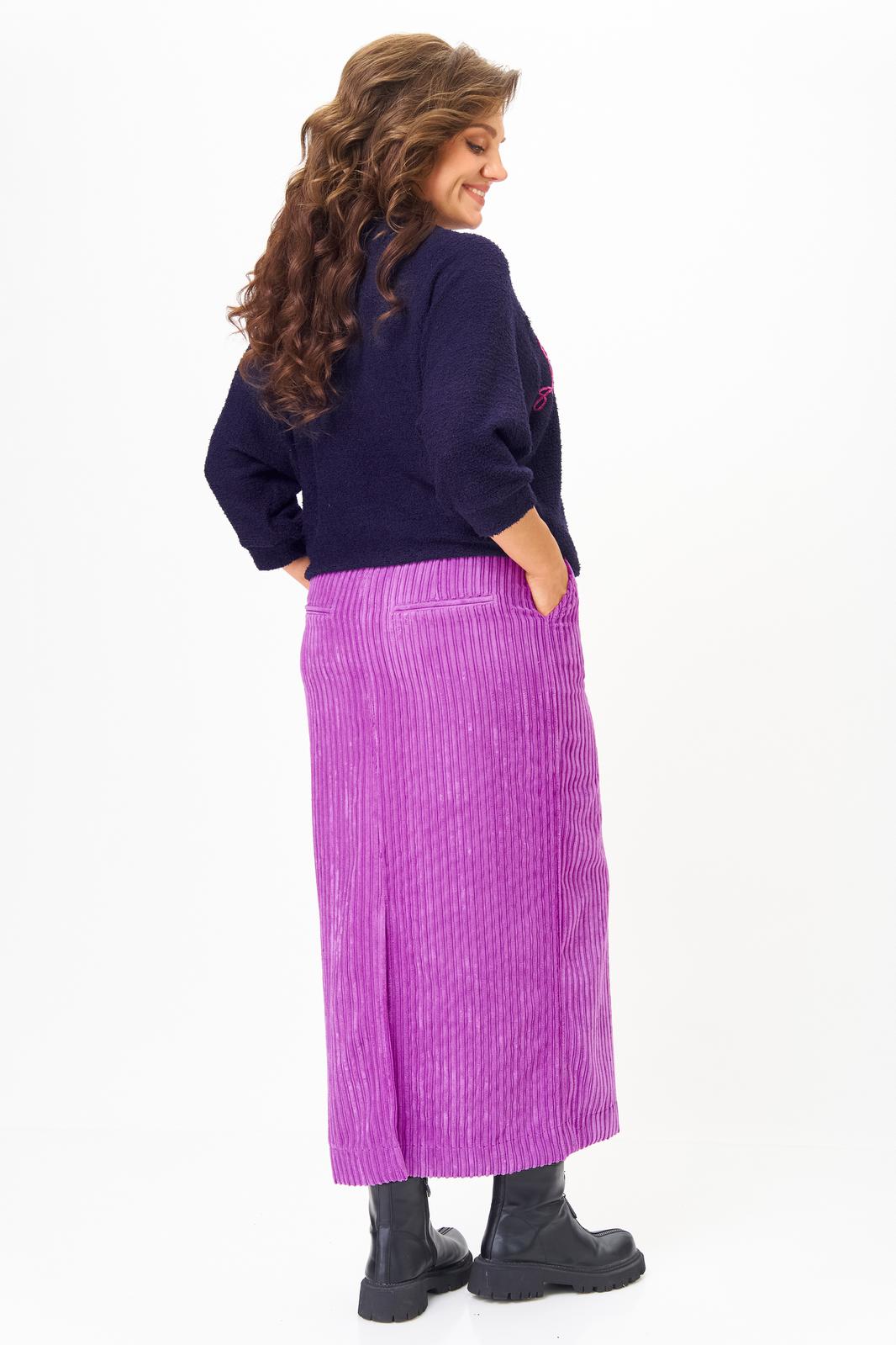 Этот элегантный и модный комплект станет ярким акцентом в вашем гардеробе! Комплект включает в себя яркий пурпурный джемпер с рукавами реглан «летучая мышь» и изящную юбку в темно-синих тонах, выполненную из мягкого, приятного к телу вельвета.