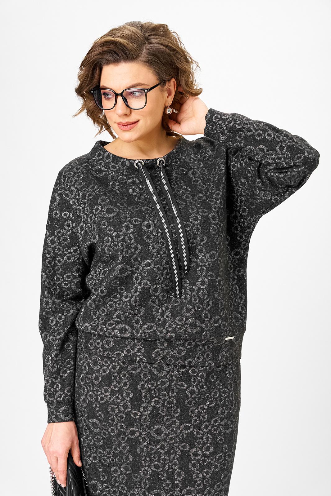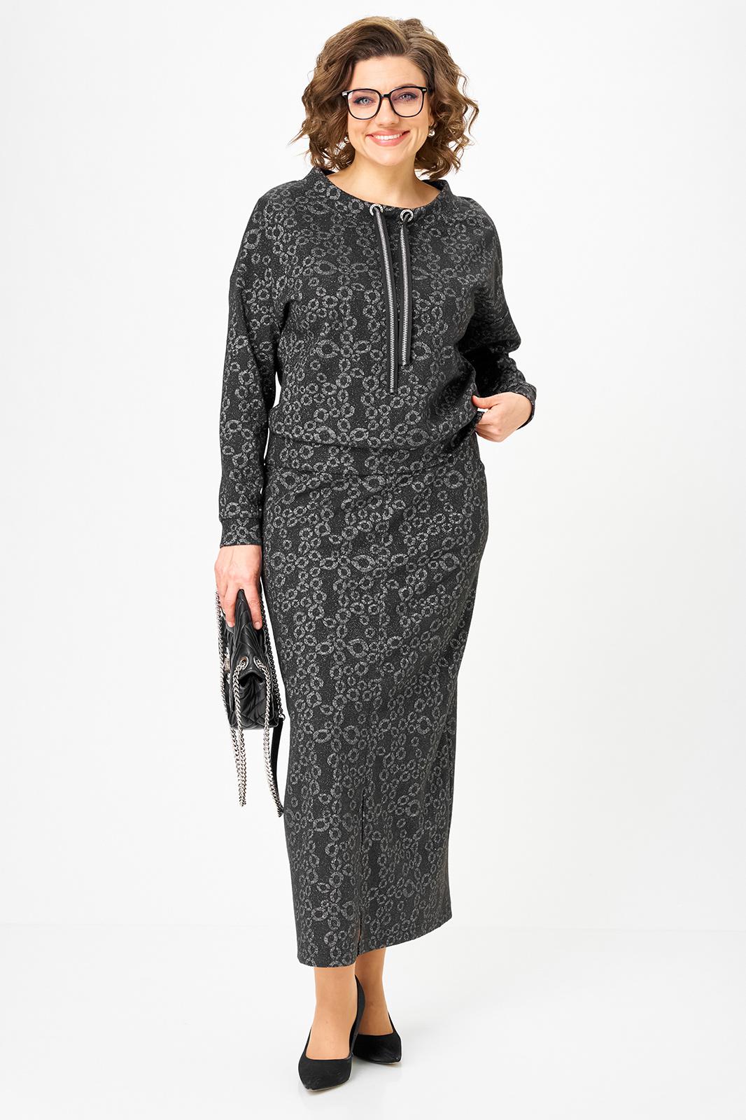 Плотный трикотаж хорошо держит силуэт, не «плывёт» и не вытягивается, при этом остаётся комфортным в движении. Принт — деликатный, небанальный, выглядит дорого и актуально вне сезона.