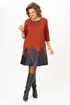 Модель с трапециевидным силуэтом длиной чуть выше колена идеально подчеркивает женственные линии и визуально стройнит фигуру. Втачные рукава 3/4 и обработка бейкой из эко-кожи по низу рукавов и вороту придает изделию особую изысканность и завершенность.