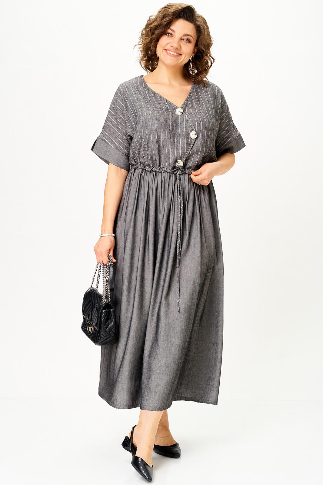 Стальной лен в полоску плюс темный графит» — must-have сезона, в котором сочетаются лёгкость, стиль и свобода движения. Модель легко трансформируется: носите свободно для бохо-образа или подчеркните талию поясом для более женственного силуэта.