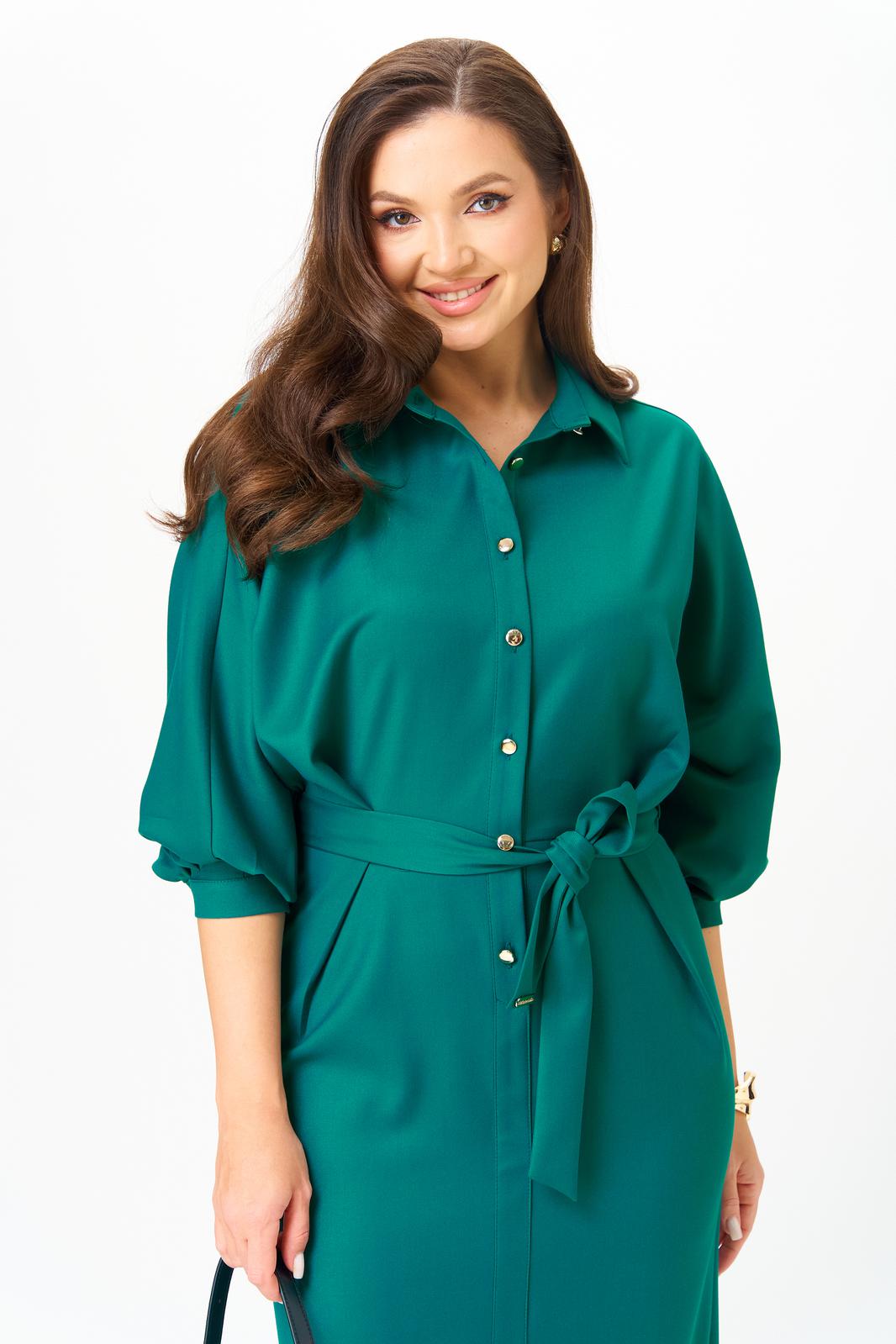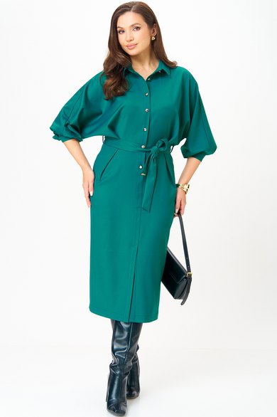 Это платье создано для женщин, которые выбирают гармонию комфорта и элегантности в каждом дне. Костюмный материал высокого качества в изумрудном цвете струится и сохраняет форму, не теряет вид после стирки и не просвечивает.