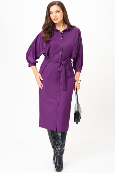 Модель с отрезной линией по талии и съемным поясом красиво подчеркивает женственность и стройность. Рукава 3/4 с аккуратными манжетами по низу добавляют образу изящества и внутренней гармонии. Прямой, немного зауженный к низу силуэт с небольшим разрезом — создаёт баланс между элегантностью и практичностью.