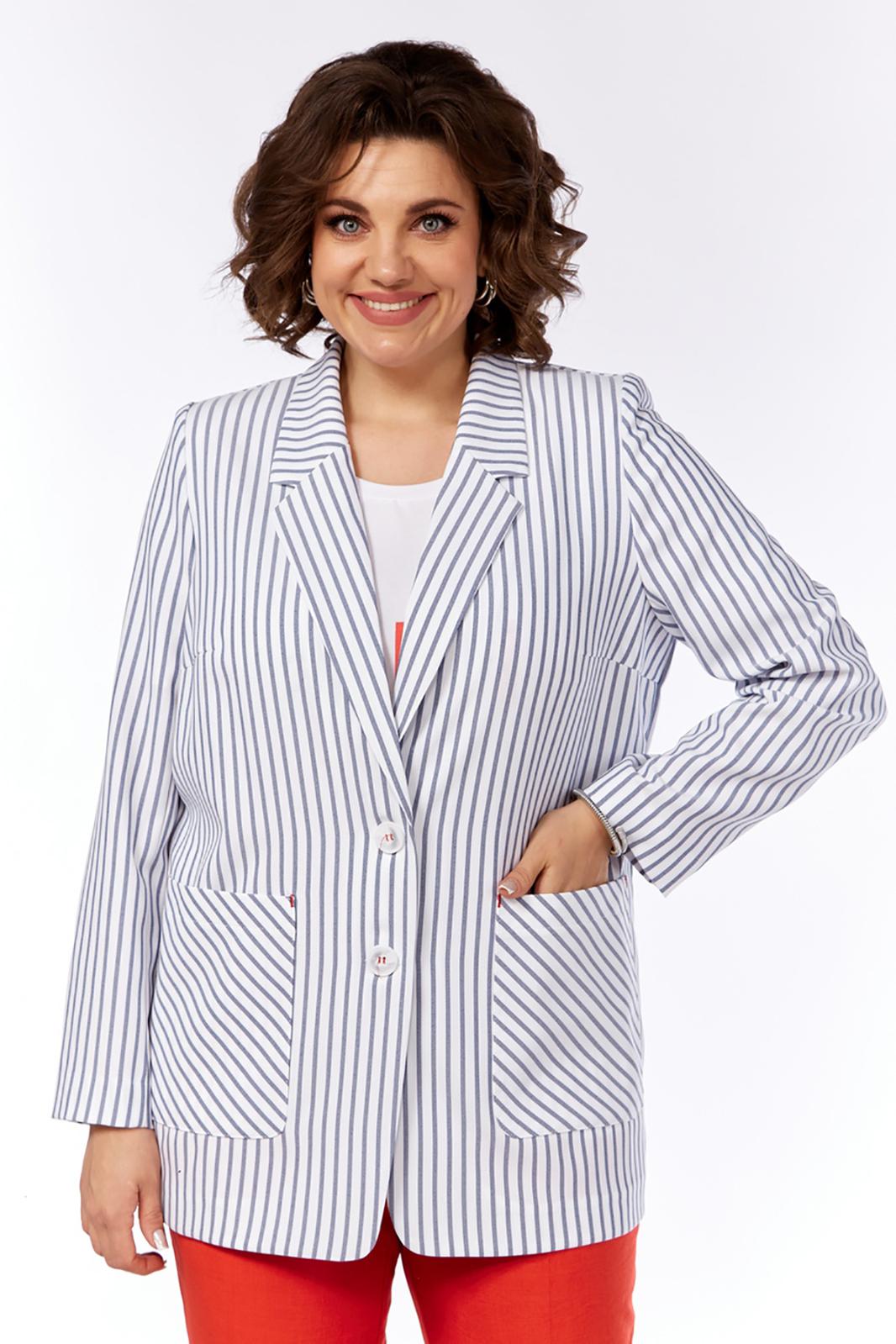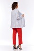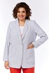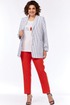 Комплект женский, состоящий из жакета, футболки и брюк. Жакет свободного силуэта. Воротник пиджачного типа, застёжка на петли-пуговицы, накладные карманы. Футболка свободного силуэта, с рукавом, по переду-декоративный принт. Брюки свободные, по талии на резинке, с застёжкой на тесьму-молнию и пуговицу. В боковых швах-карманы. Длина по спинке жакета-72см, длина рукава-62см(50-54). Длина по спинке футболки-59см(50-54) и 61см(56-60), длина рукава-23см(50-54) и 26см(56-60). Длина брюк-101см(50-54)