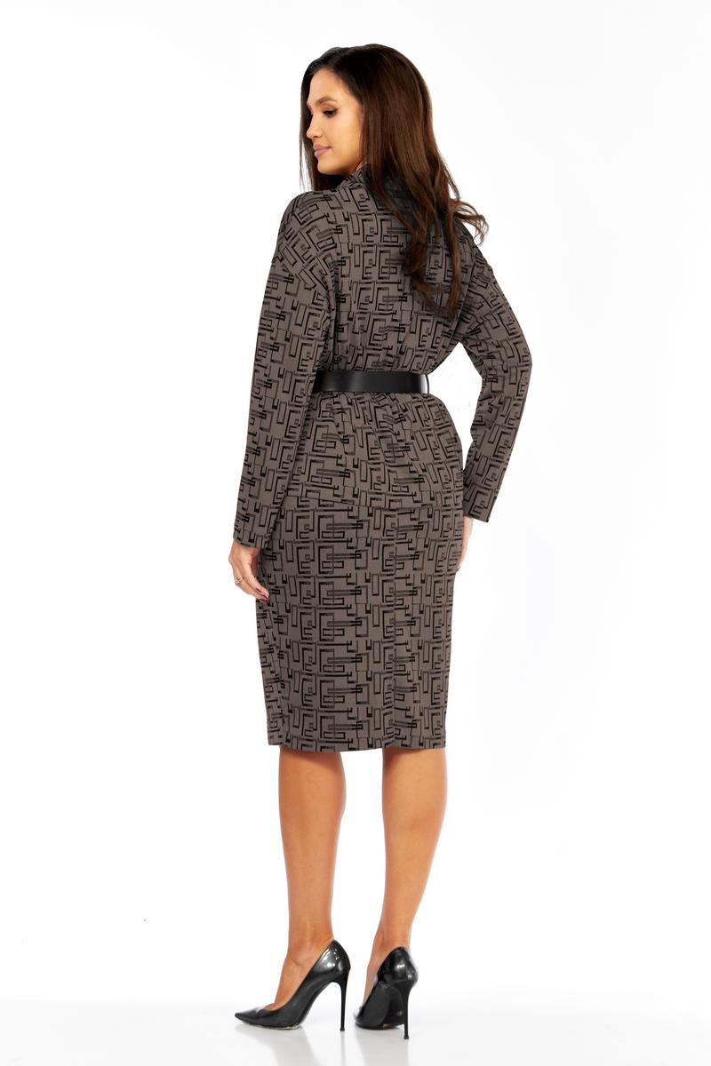 Костюм женский, состоящий из джемпера и юбки. Джемпер свободного силуэта, со спущенным рукавом. Воротник-хомут. Юбка прямая, по талии на резинке, без застежки. В комплекте-ремень.