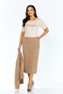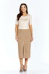 Юбка-карандаш без подклада, заужена книзу, имеет разрез по переду для удобства. Пояс юбки присборен на резинку для лучшего прилегания сзади, спереди застегивается на молнию и петлю и пуговицу. На передних половинках обработаны карманы-хулиганы, на задних – накладные карманы.