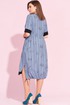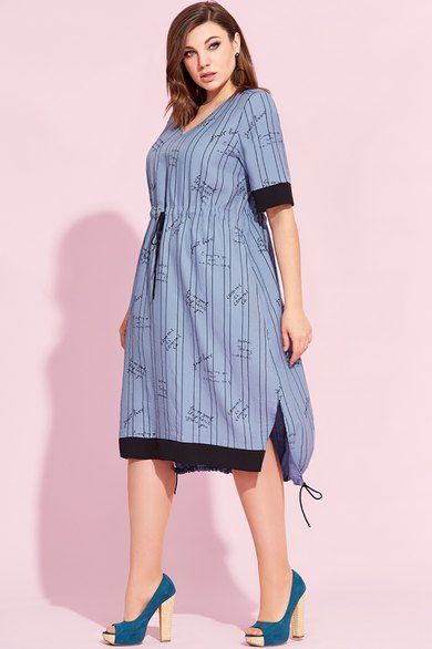 Платье женское свободного силуэта, расширенное книзу. В области талии-кулиса с поясом-завязкой. V-образный вырез горловины. Рукав втачной с манжетой. В боковых швах-карманы и разрезы. По спинке средний шов. Манжеты, отделочная деталь низа переда и пояс-завязка-из ткани-компаньона. Низ спинки присобран на завязку.