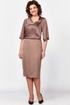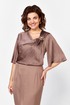 Женское платье полу-прилегающего силуэта, выполнено из однотонного атласа и атласа в полоску. Лиф платья двойной и отрезной по линии талии, горловина нижнего слоя лифа округлой формы, второй слой лифа на полочке выполнен из атласа в полоску и по горловине задрапирован на эффектную пряжку. Юбка платья заужена к низу, с вытачками, выполнена из однотонного атласа. Спинка платья из однотонного атласа, со средним швом и вытачками, в среднем шве потайная молния, по низу разрез. Рукав укороченный, втачной, из атласа в полоску. Элегантное платье из приятной на ощупь ткани, с эффектным декором отличный выбор для любого мероприятия.