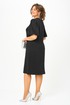 Стильное платье полу-прилегающего силуэта, выполнено из трикотажного полотна, хорошо тянется. Горловина округлой формы, на обтачке, также на полочке обработаны нагрудные вытачки. Спинка платья со средним швом и вытачками, рукав втачной, со сборкой по окату и низу, на трикотажной подкладке. В качестве декора к платью прилагается съемное украшение, которое фиксируется при помощи двух блочек на горловине спинки. Красивое платье, которое отлично подойдет для любого мероприятия!
