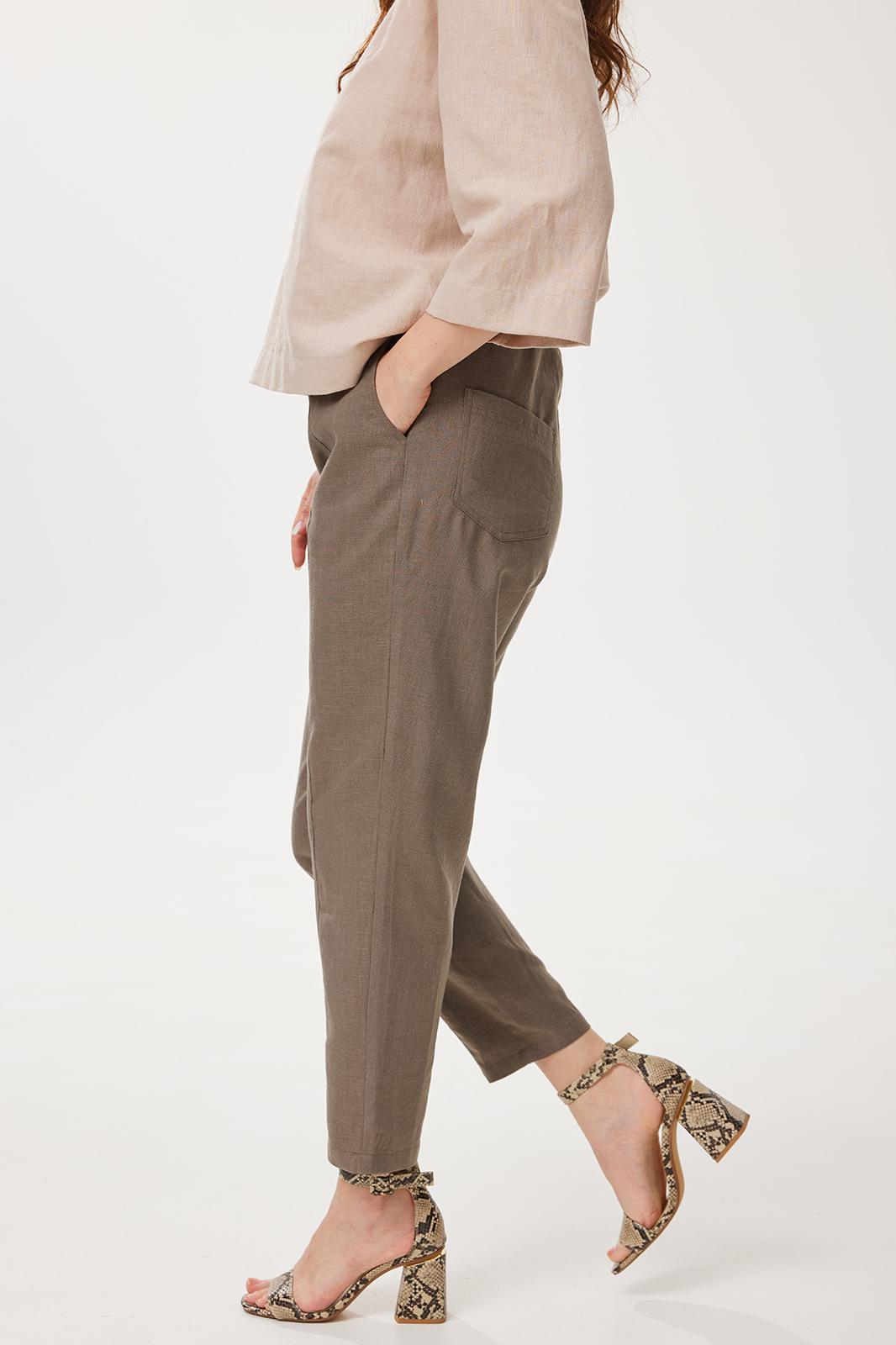 Стильные Брюки -Бананы изготовлены из качественного льна с эффектом мятости. Брюки летнего ассортимента, свободные по бёдрам, к низу заужены, с поясом на резинке, без молнии. Отстрочены по переду отделочной строчкой, с внутренними карманами. Сзади накладные карманы. Очень удобные. Подходят как на рост 164, так и на рост 170. Посадка: средняя.