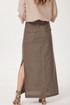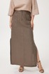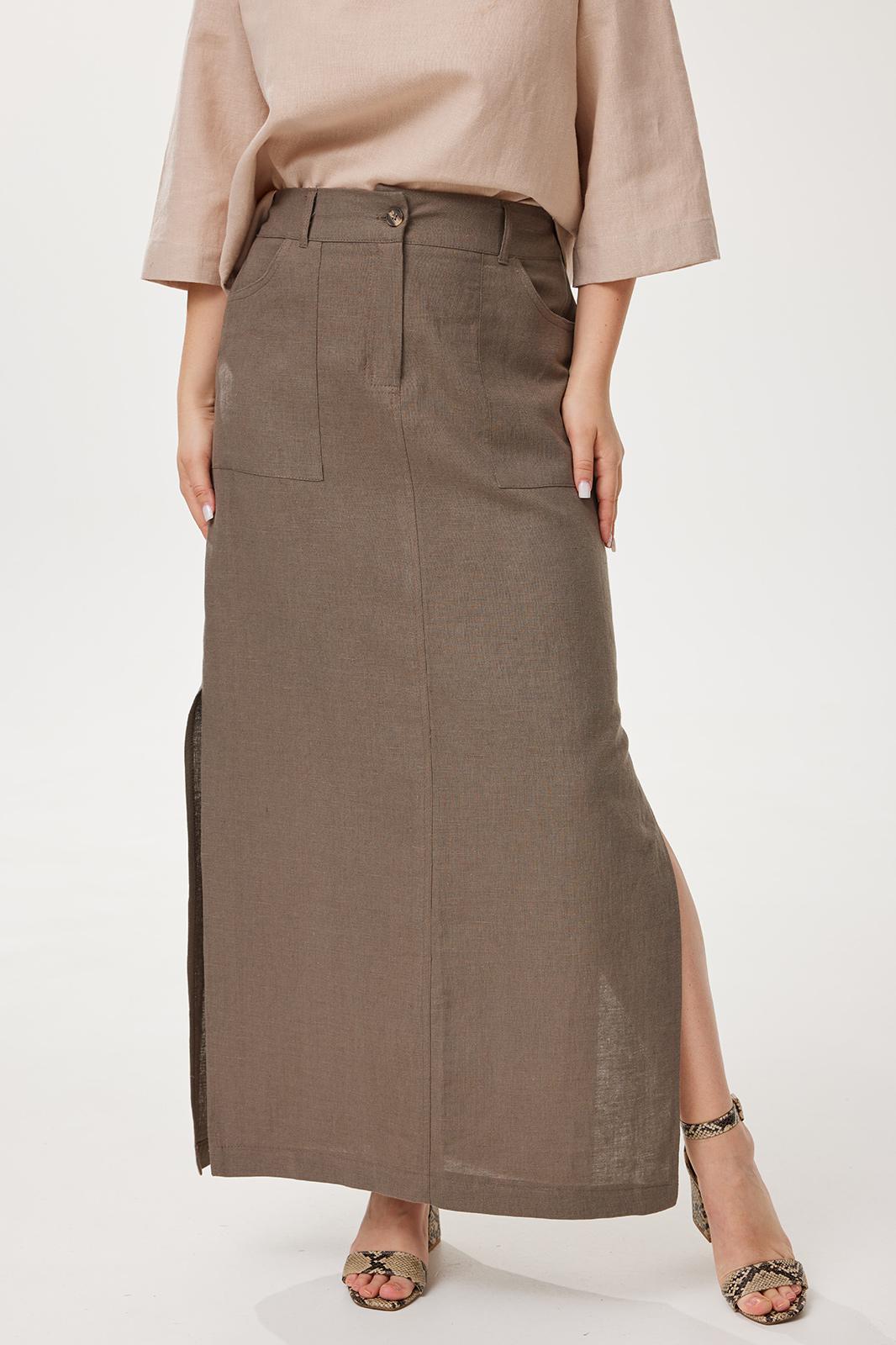 Стильная Юбка макси из качественного мягкого льна с эффектом мятости с накладными карманами, с разрезом по бокам украсит разные типы фигуры. Юбка подходит как на работу, так и для прогулок и отдыха. Модель с притачным поясом, в задней части пояса вставлена резинка. с застёжкой на тесьму-молнию и пуговицу на поясе. На задней половинке расположены притачные кокетки с клапанами.