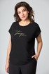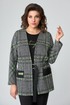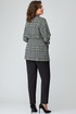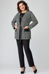 Комплект женский трехпредметный. Жакет трикотажный без подкладки со спущенной линией плеча, по переду прорезные карманы с широкой листочкой из отделочной ткани. Жакет с поясом по линии талии. Блузка трикотажная со спущенной линией плеча, по горловине и рукаву планки. Блузка декорирована печатью выполненной методом шелкографии. Брюки классические на поясе с резинкой по бокам и карманами по переду. Посадка брюк средняя.