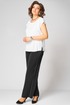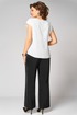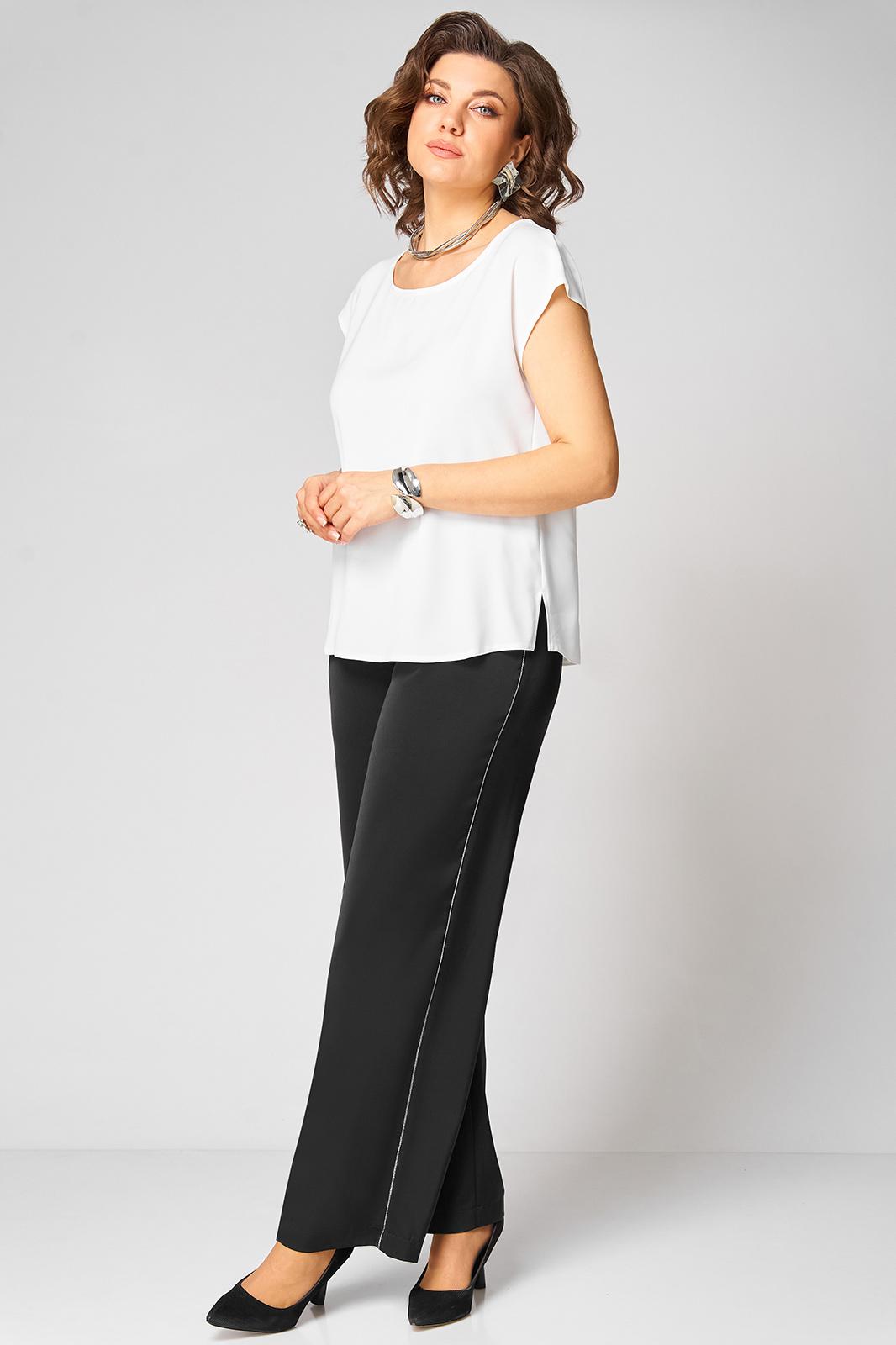 Топ с округлым вырезом горловины и спущенной линией плеча. Длина рукава от горловины-18см, длина по спинке-61см. Брюки прямого силуэта на притачном поясе с эластичной резинкой, с боковыми наклонными карманами на передних половинках брюк. По боковым швам настрочен кант.