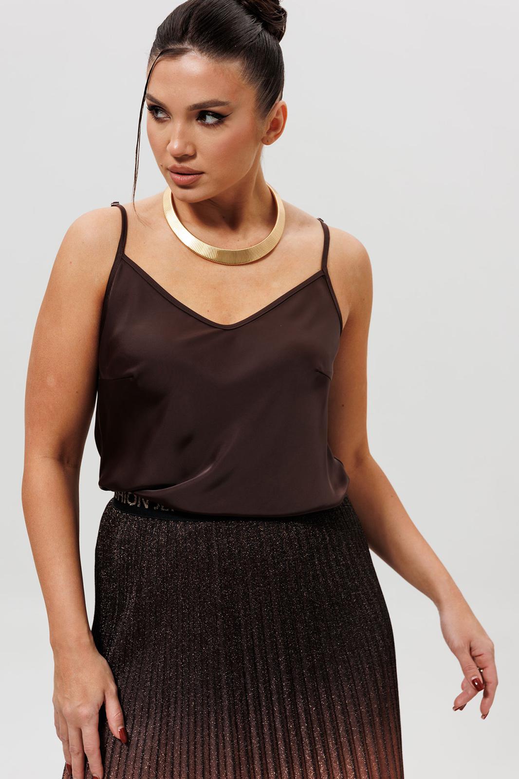 Топ выполнен из атласной ткани. Изделие прямого силуэта с нагрудными вытачками. Перед фигурный, обработан окантовкой, так же, как и низ изделия. Бретели регулируются. Этот базовый топ (Арт. 1164) — фундаментальная вещь в вашем гардеробе. Доступный в трех насыщенных цветах (красный, черный, шоколадный), он станет идеальной основой для сложных многослойных образов. Топ выполнен из комфортной ткани, которая хорошо сочетается с кружевными и бархатными вещами. Его можно носить с юбкой 1281, под кружевными жакетами или с кейпами из нашей коллекции. Универсальный топ подчеркивает фигуру и обеспечивает комфорт в течение всего дня. Размеры 46-56.