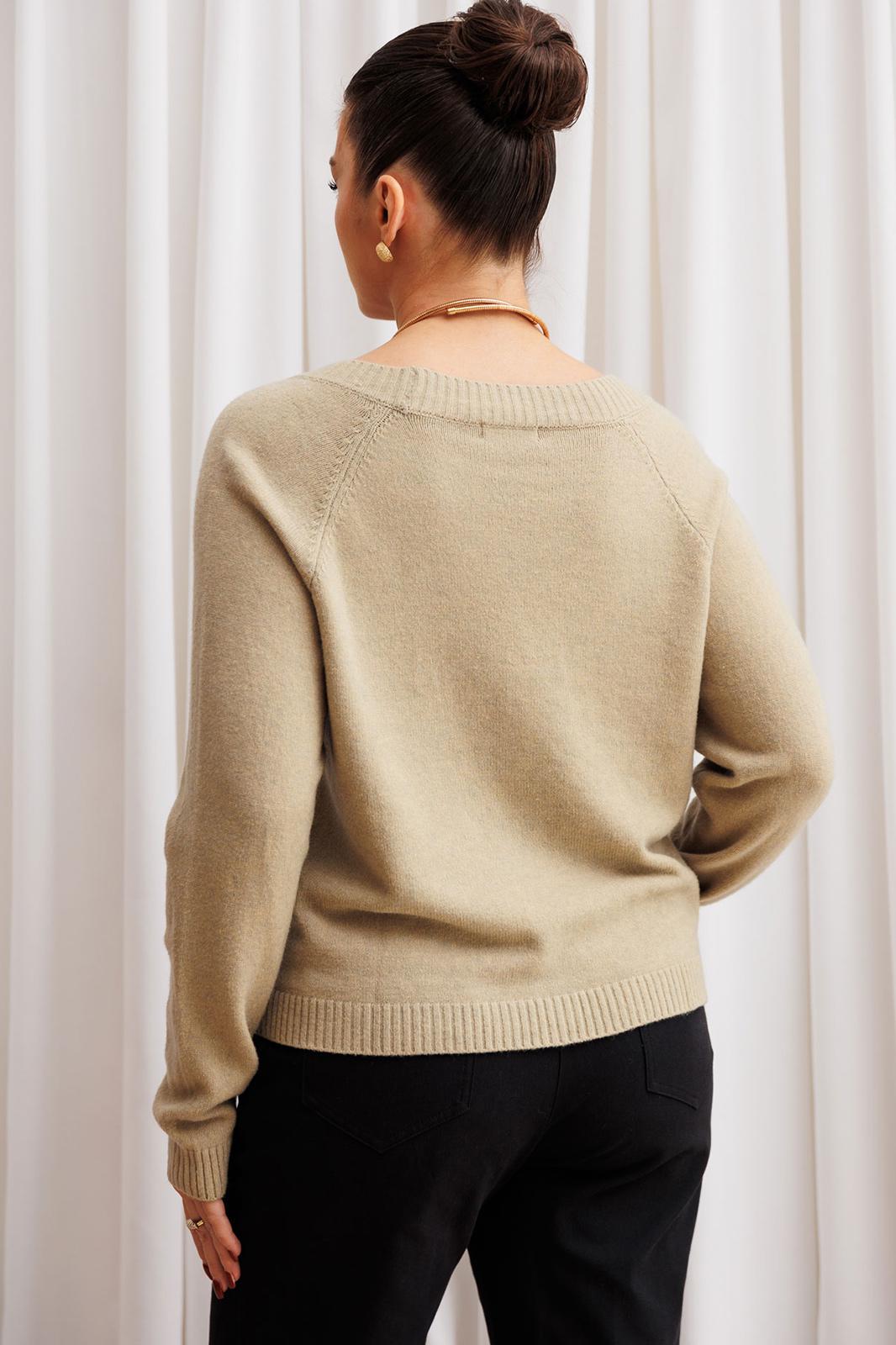 Элегантный и уютный джемпер из мягкого трикотажа — идеальный выбор для тех, кто ценит комфорт и стиль в повседневной жизни. Модель выполнена в нежном оливкомов оттенке, который легко сочетается со многими цветами одежды. V-образный вырез подчеркивает линию шеи и создает эффект стройности, а длинные рукава обеспечивают тепло и свободу движений.