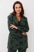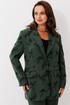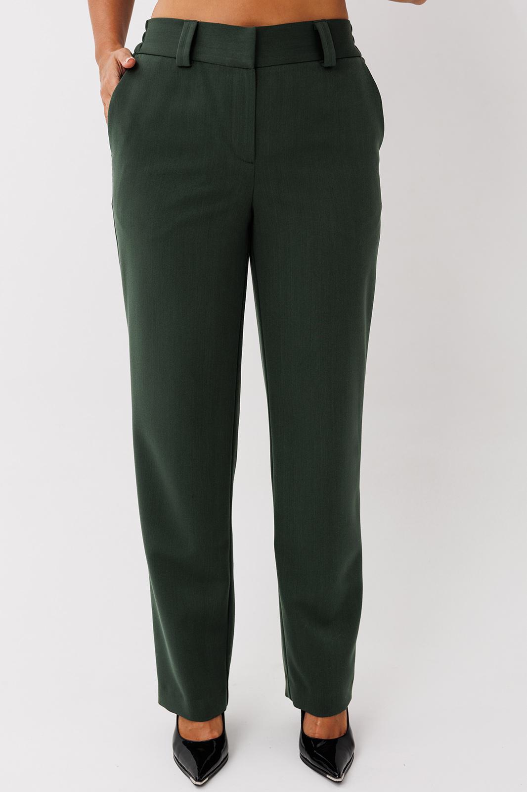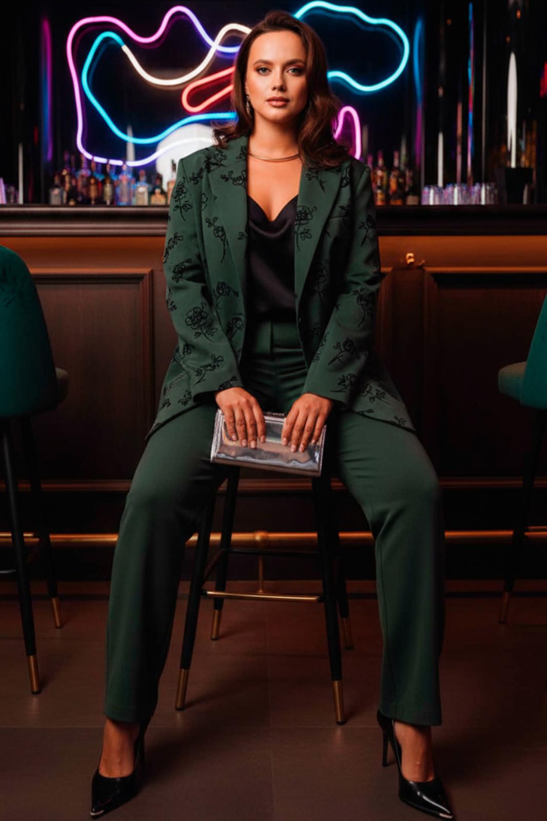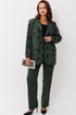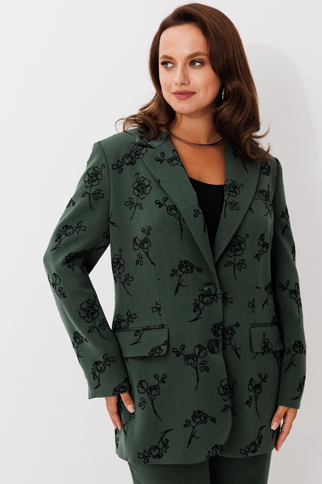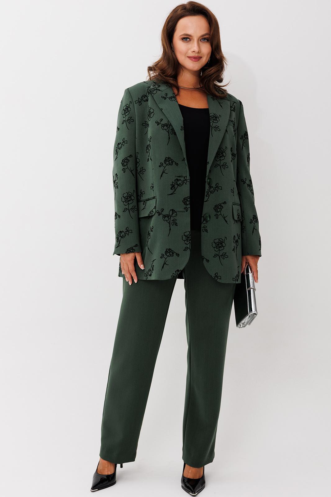 Элегантный женский костюм, состоящий из жакета и прямых брюк, выполнен из костюмной ткани с флоковым напылением — материал стабилизирован, не растягивается и отлично держит форму. Жакет однобортный, на петлях и пуговицах, с английским воротником и клапанами по бокам. Рукав втачной, длина — полная. Посадка свободная, что обеспечивает комфорт и стильный силуэт. Брюки прямого кроя, на частичной резинке по поясу для удобной посадки и идеального прилегания.