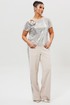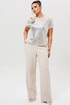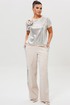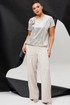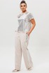 - Тип ткани: текстиль -Блуза: полиэстер 97%, спандекс 3%. Подкладка – полиэстер 100% (трикотаж). Брюки полиэстер 64%, вискоза 33%, спандекс 3%.