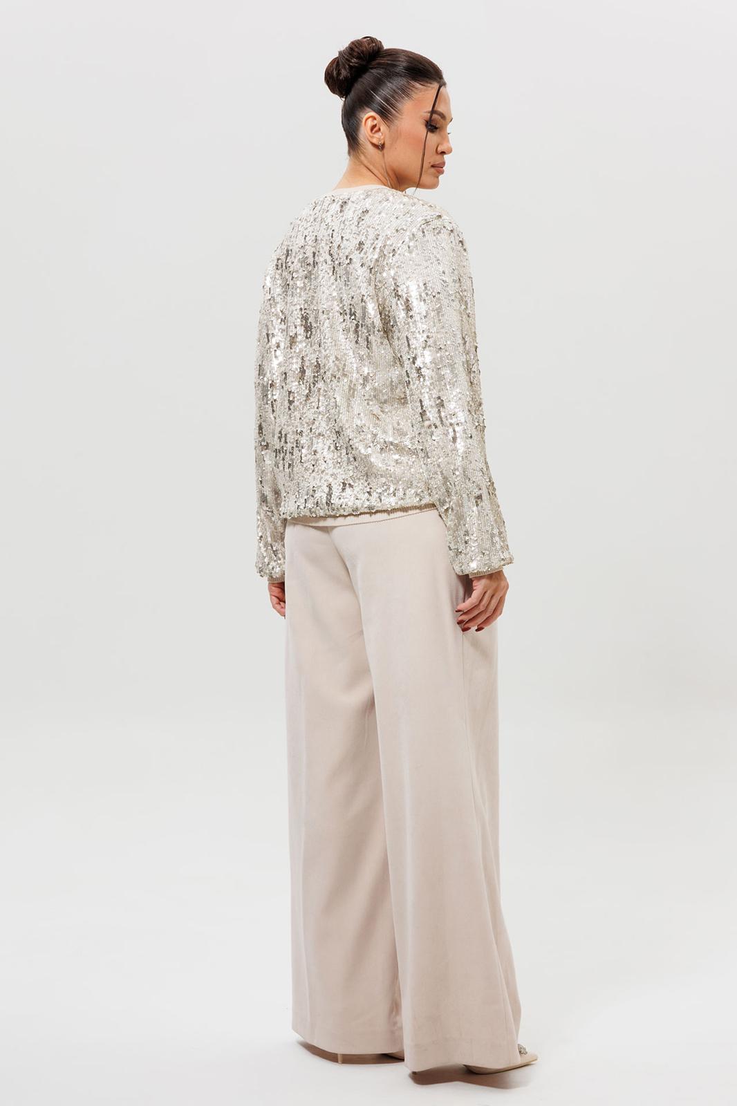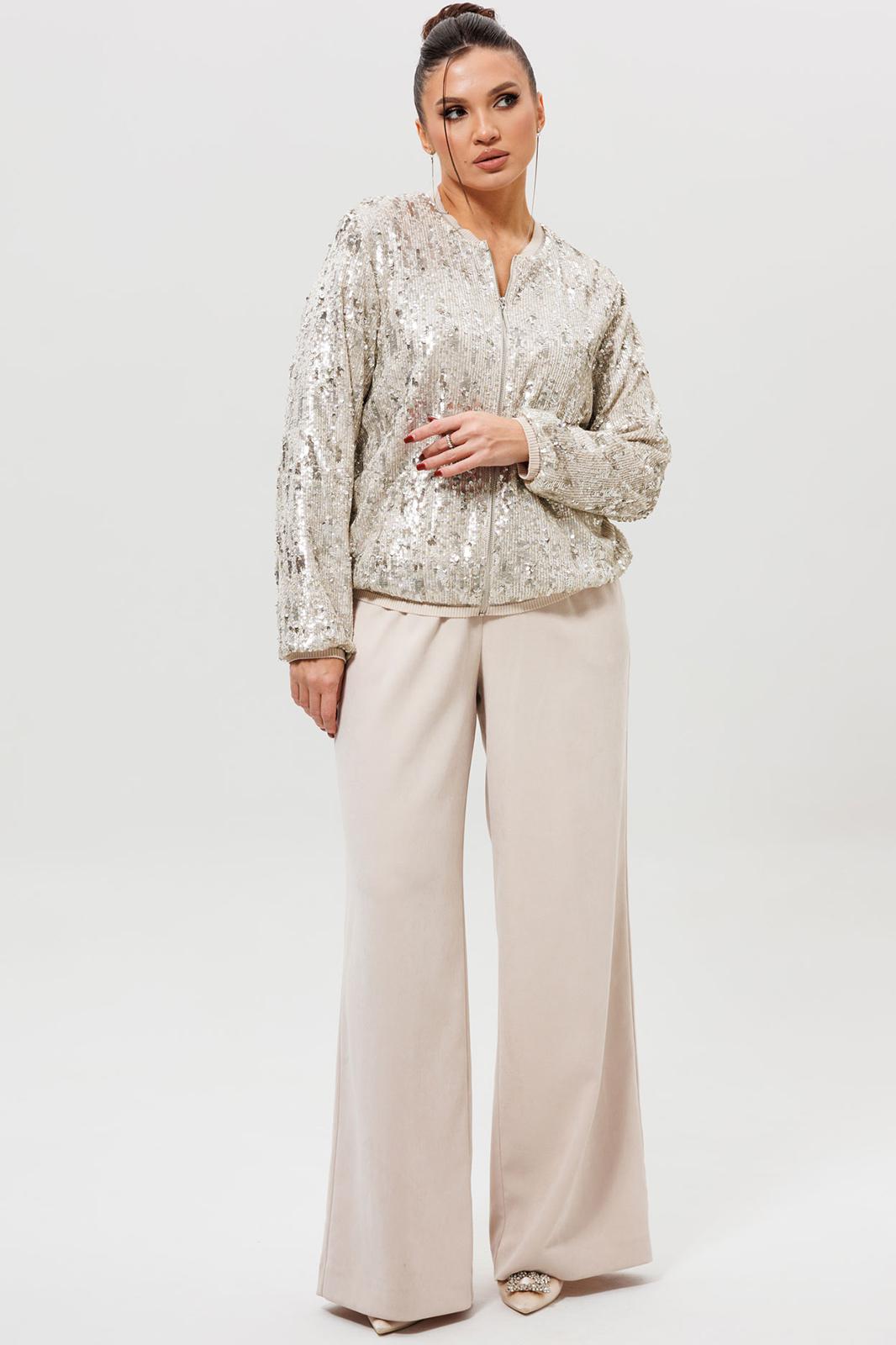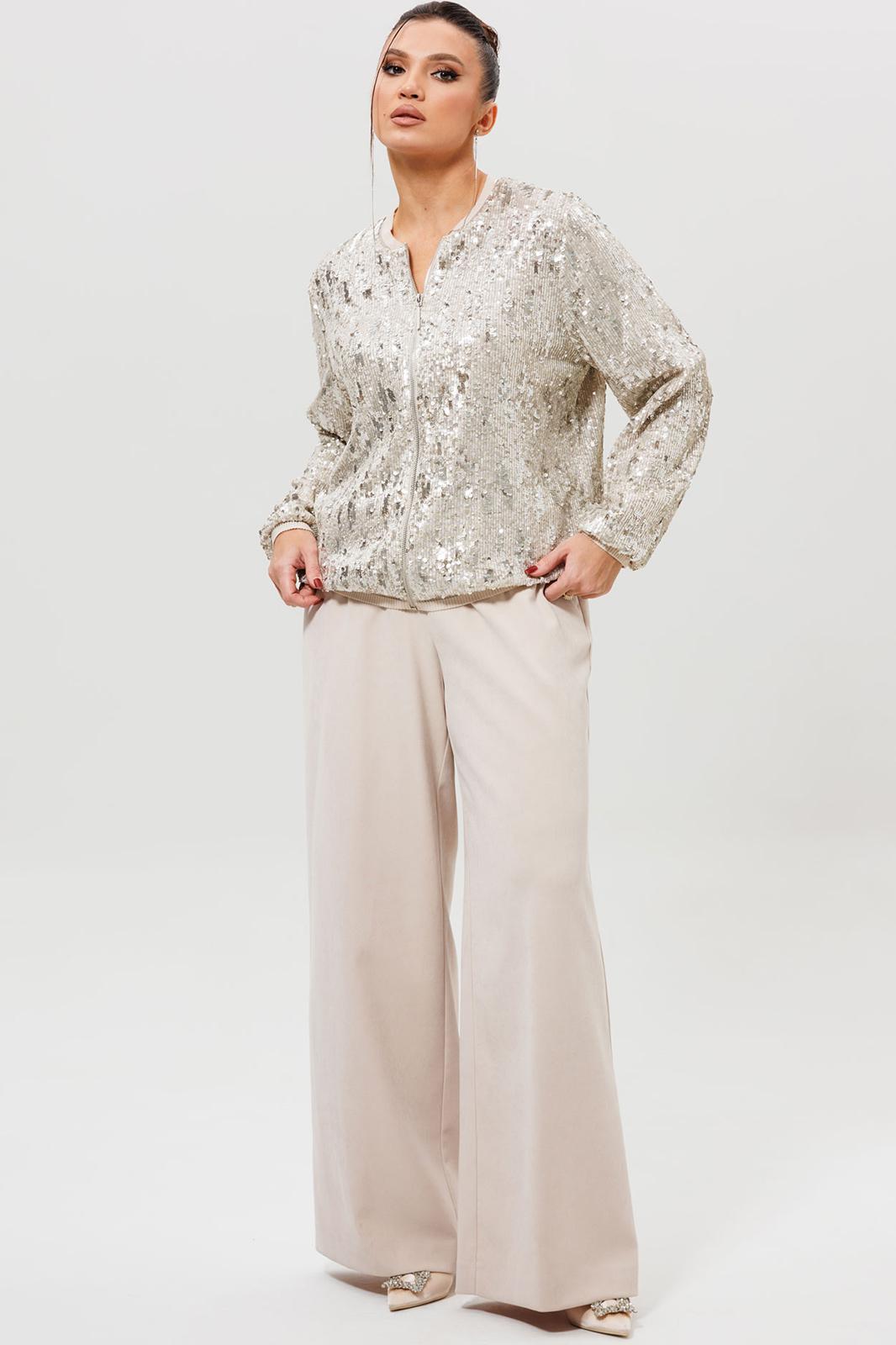 Этот готовый костюм с бомбером из пайеток (Арт. 1279) — идеальное решение для тех, кто хочет выглядеть ярко и стильно. Комплект включает в себя бомбер с пайетками и соответствующие ему брюки из костюмной ткани с напылением. Мерцающая куртка и светлые брюки создают целостный и дерзкий ансамбль, который не останется незамеченным. Такой костюм для вечеринки станет вашим лучшим выбором для посещения клуба, тематического мероприятия или любого события, где важно подчеркнуть свою индивидуальность. Размеры 48-54.