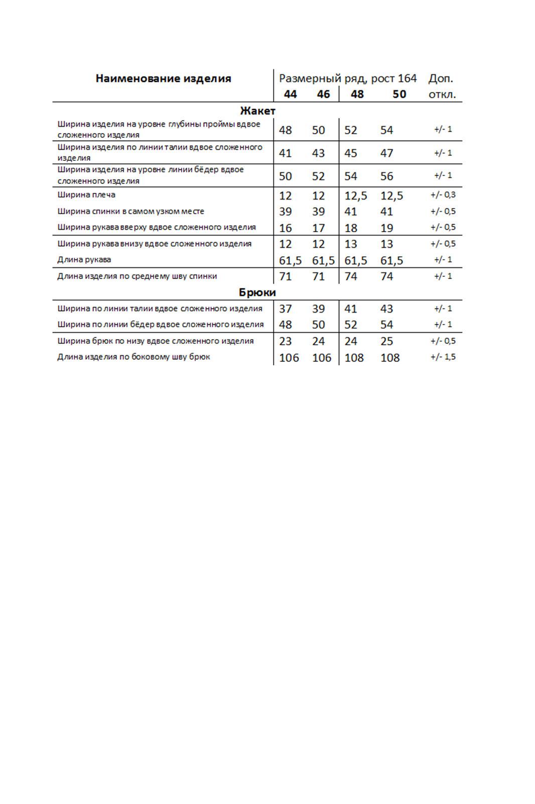 - Тип ткани: Состав ткани: жакет- полиэстер 60%, вискоза 35%, эластан 5%, брюки- полиэстер 48%, вискоза 48%, спандекс 4%