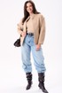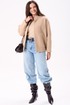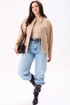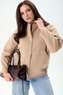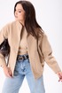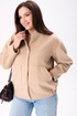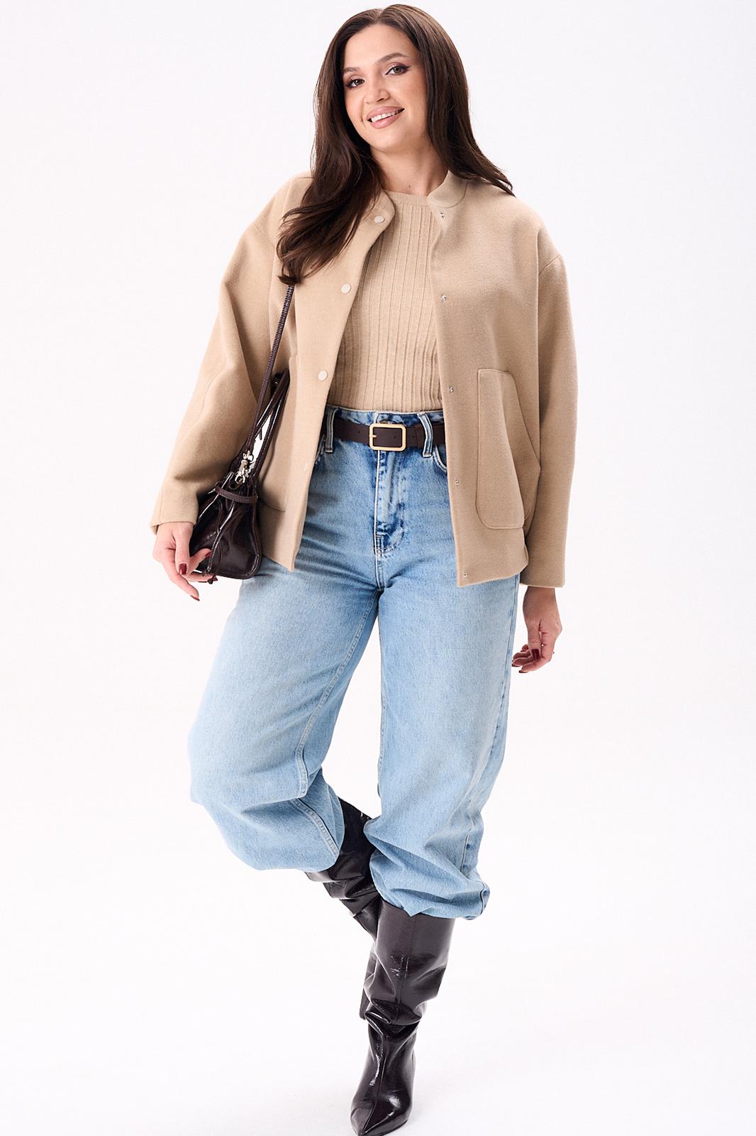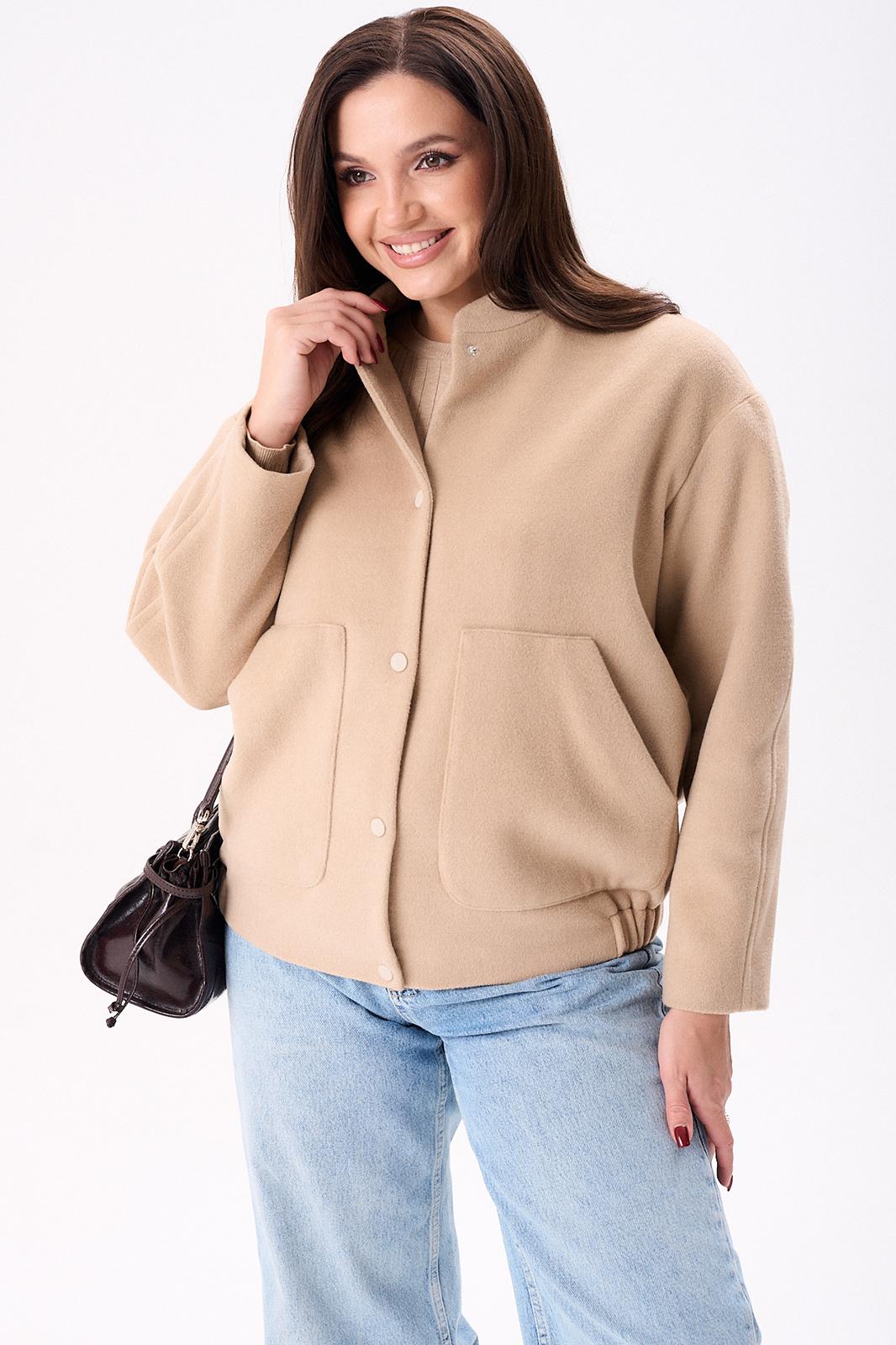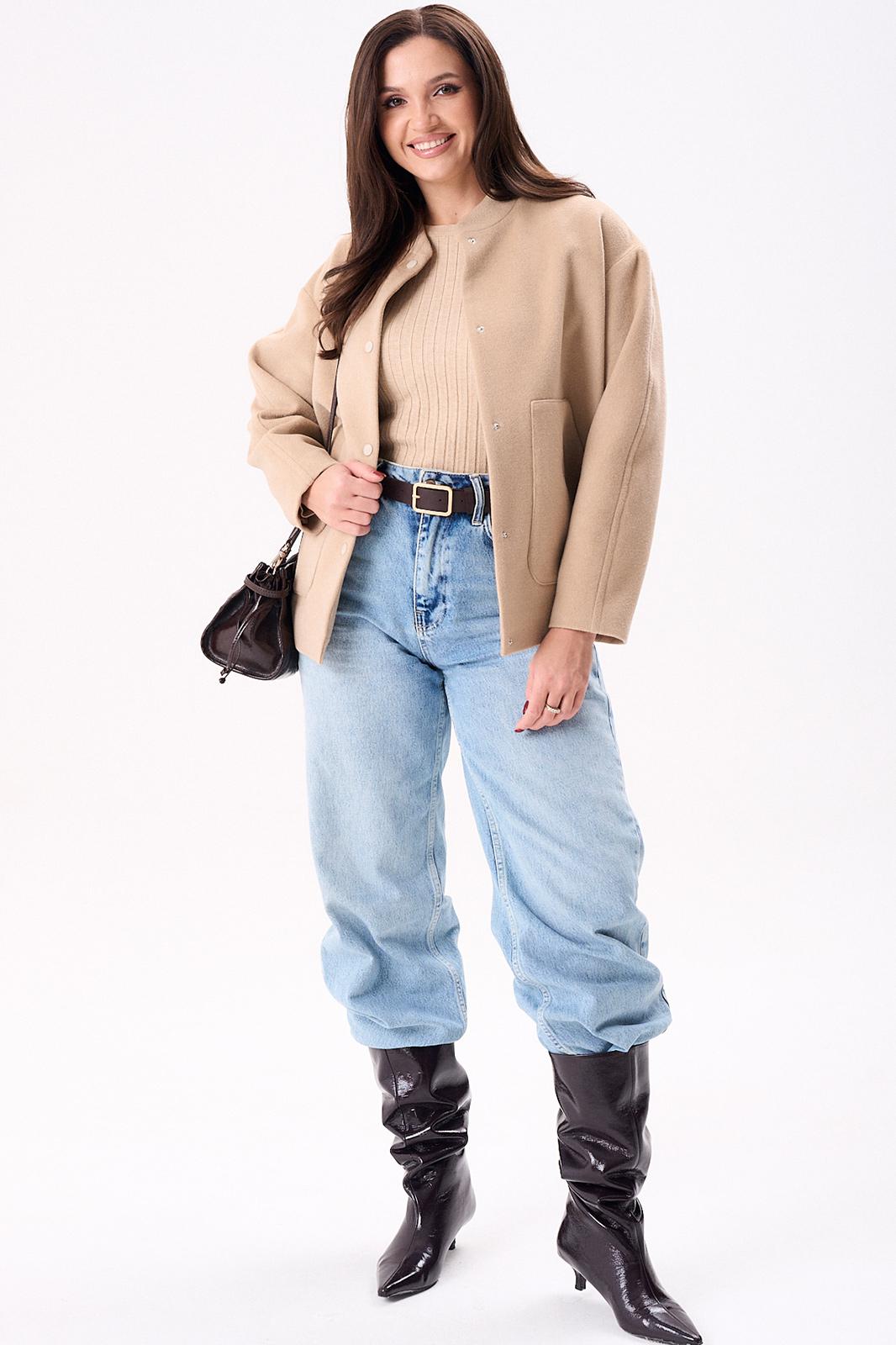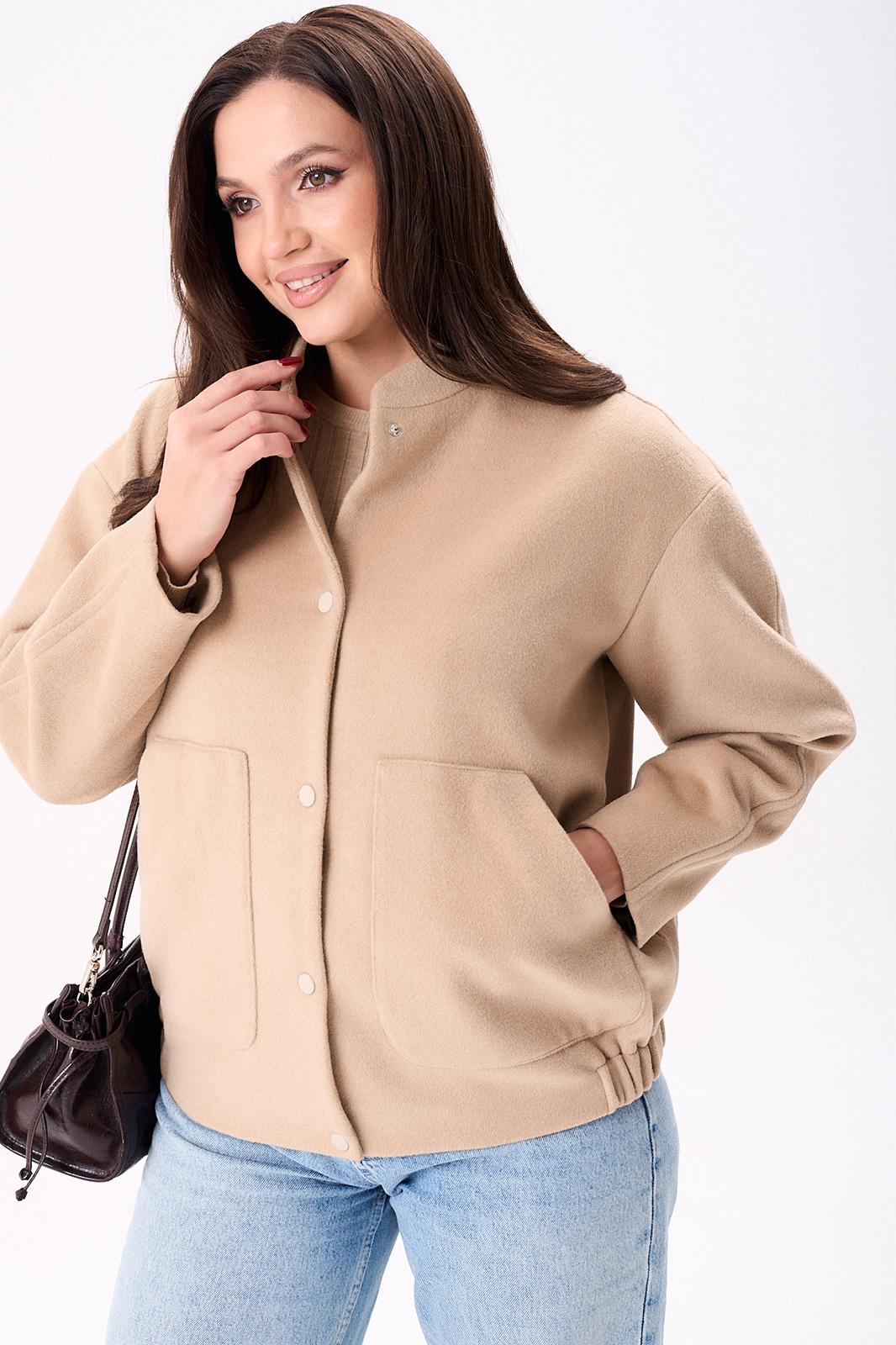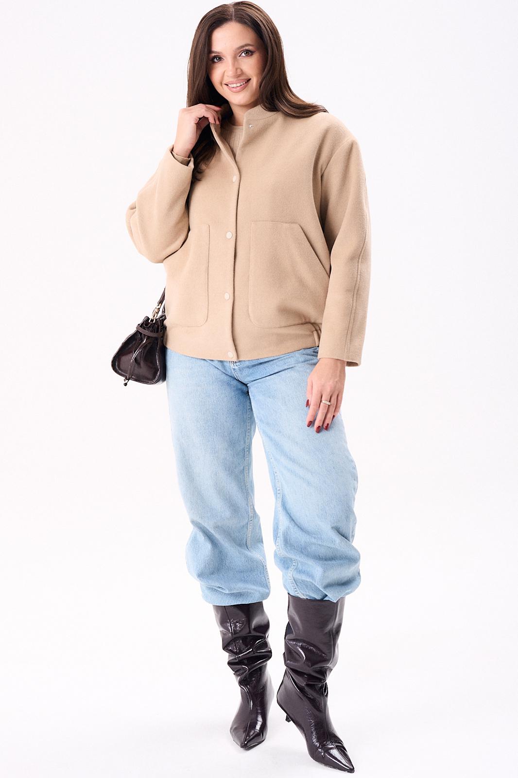 Женский жакет выполнен из мягкой, пальтовой ткани что придаёт изделию универсальность и комфорт. Воротник-стойка. Застёжка: на пробивные кнопки. Рукава со спущенной проймой втачной, двухшовный. В изделии предусмотрены накладные карманы на передней части. Эластичная резинка по нижнему краю жакета создаёт лёгкую сборку, что подчёркивает силуэт и обеспечивает дополнительное удобство. Жакет на подкладке.