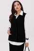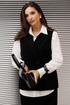 Двубортная застежка с крупными пуговицами придает образу строгости и элегантности, идеально подходит для офиса или деловых встреч. Карманы в рамку не только функциональны, но и служат стильным акцентом, подчеркивая линию талии и создавая визуальный баланса жилетка легко сочетается с различными элементами гардероба: наденьте ее поверх белой блузки для создания классического делового образа, или комбинируйте с джинсами и туфлями на каблуке для более расслабленного, но все же стильного лука. Подойдет как для весеннего, так и для осеннего сезона благодаря своей универсальности и качественным материалам.