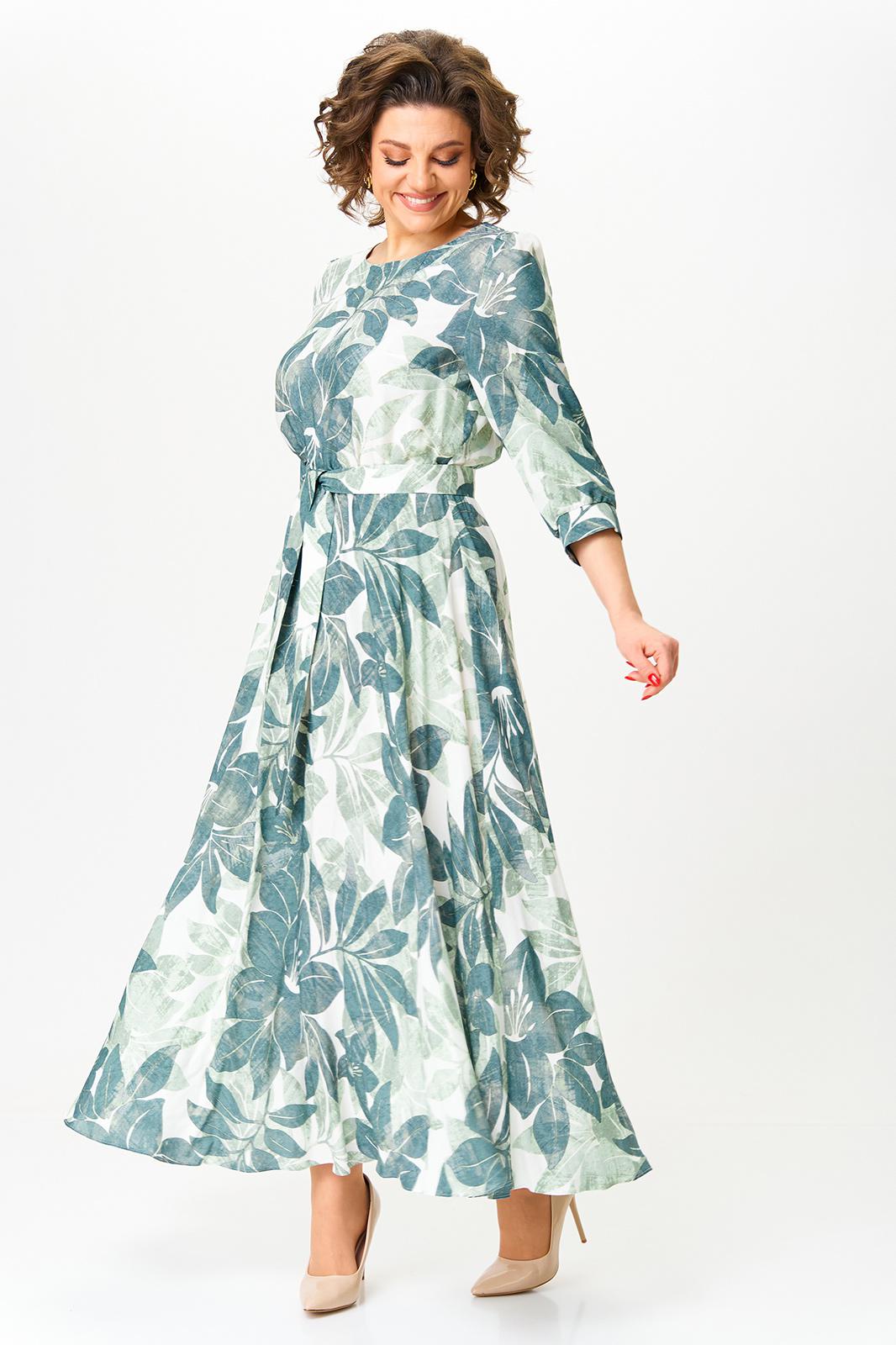 Женское платье из вискозной ткани премиального качества имеет свободный силуэт и расширено книзу. Имеется подкладка. Перед и спинка отрезные по линии талии, талиевые шов присобран на резинку. В среднем шве спинки на горловине имеется застёжка на навесную петлю и пуговицу. В верхней части переда имеются нагрудные вытачки, на задней части выточки отсутствуют. Нижняя часть платья расширена к низу. Рукав длинной 3/4, одношовный, втачной, свободный. Низ рукава присобран и имеет приттачную манжету, которая застёгивается на пуговицу. В дополнение к платью имеется текстильный пояс из основной ткани. Наряд выполнен из высококачественной вискозной ткани с красивым светло и темнозеленым цветочным принтом. Благодаря натуральному составу ткани, платье прекрасно пропускает воздух, практически не мнется, хорошо садиться по фигуре. Благодаря крою и налиию пояса хорошо подчеркивает талию и грудь, свободный низ с лёгкостью скроет пышные бедра. Длинна изделия макси, что делает его идеальным для женщин среднего и высокого роста. Хорошо сидит на фигуре любого типа. В нем вы будете чувствовать себя красиво и неотразимо, уверенно и сексуально, получите массу комплиментов и не останетесь без внимания. Команда профессионалов белорусского бренда Мода Версаль разработала это платье в большом размерном ряде 46, 48, 50, 52, 54, 56. Выполнено оно по лекалам собственной разработки и прошло все этапы контроля качества, все швы ровные и аккуратные. Это платье станет прекрасным нарядом на 8 марта или день рождение, юбилей или свадьбу, крестины или другое торжественное событие. В нем вы прекрасно будете себя чувствовать во время отпуска или на прогулке. Хорошо будет смотреться как на молодой девушке, так и на взрослой женщине. Данное изделие хорошо сочетается как с туфлями на высоком каблуке, так и с обувью на низком ходу. Рекомендации по уходу. Изделие хорошо переносит стирку и утюжки, практически не деформируется. Для большего сохранения первоначального вида рекомендуем стирать изделие руками или в режиме деликатной стирки с использованием деликатных средств для стирки без хлора.
