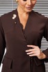 Линия плеча спущена, что добавляет расслабленности, а рукав рубашечного покроя обеспечивает комфорт. Особым элементом дизайна является шнур вокруг талии с металлической фурнитурой, который можно регулировать для создания идеальной посадки. Жакет также дополнен съемной брошью, что позволяет варьировать стиль. Внутренняя подкладка обеспечивает дополнительный комфорт.