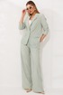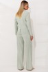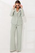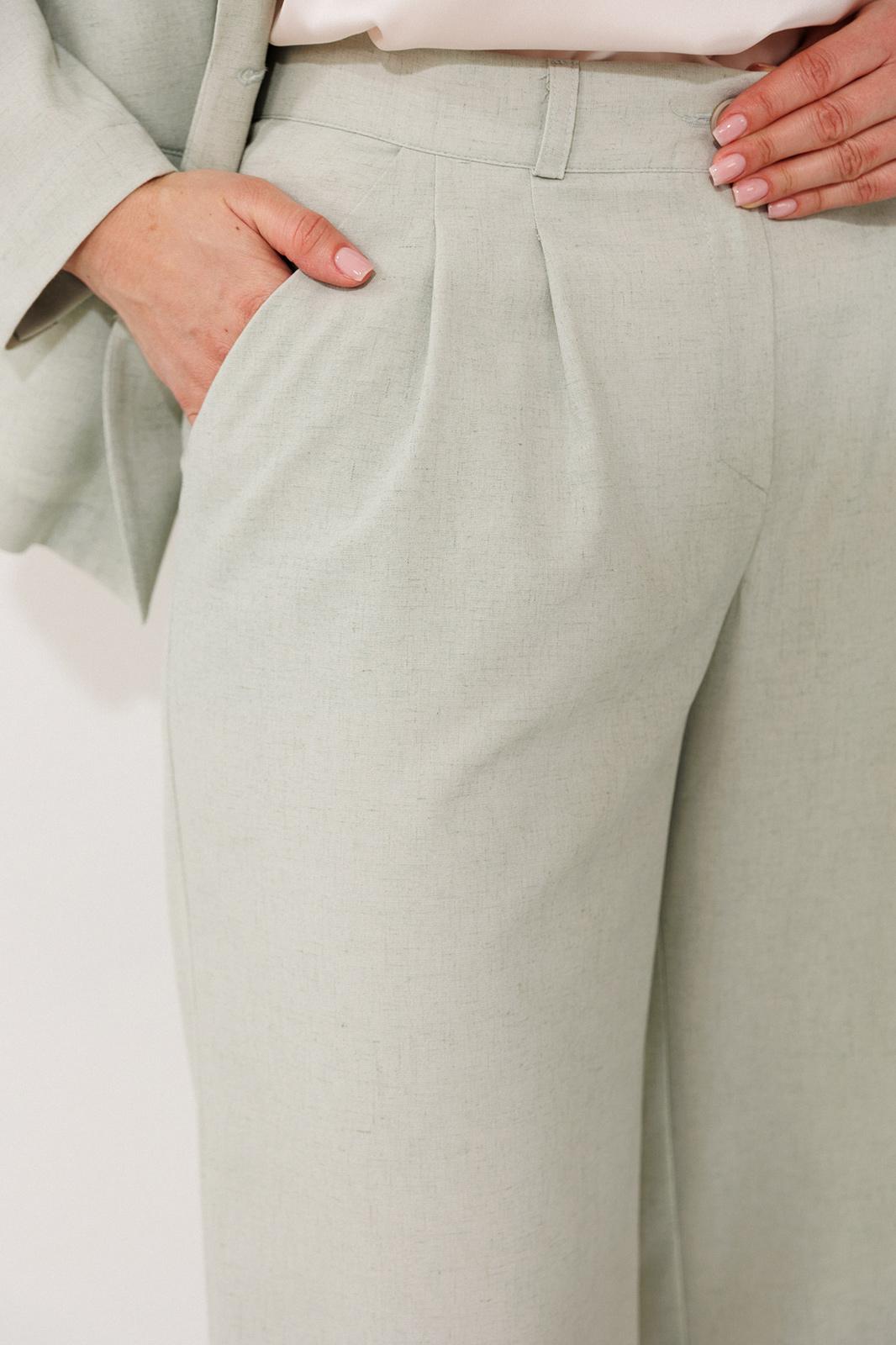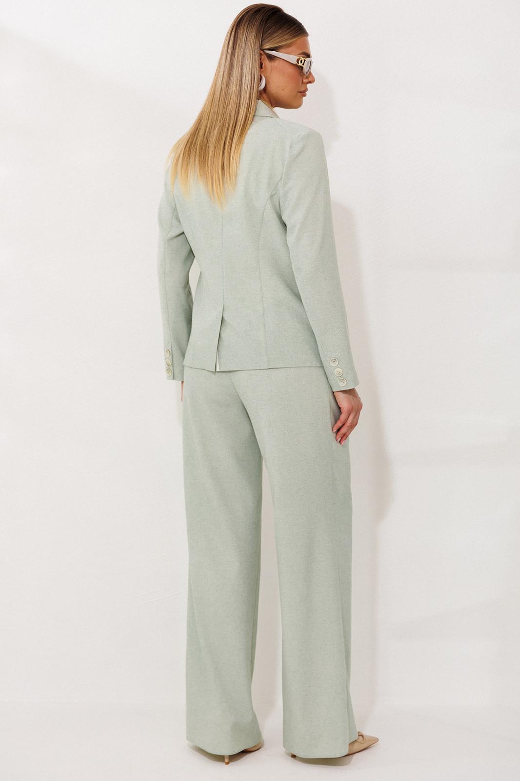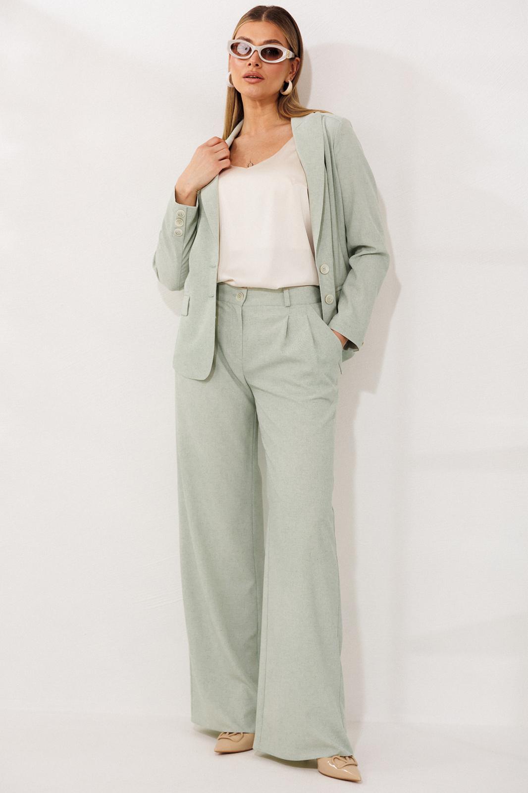 Рукава втачные, двухшовные, с шлицей и пуговицами, создают стильный акцент. Центральная застежка на петли и пуговицы добавляет нотку классики. Брюки палаццо с складками от талии обеспечивают комфорт и легкость, а притачной пояс с шлевками и застежка на молнию в среднем шве завершают образ, сочетая элегантность и практичность. Этот костюм станет отличным выбором для любого мероприятия, подчеркивая ваш утонченный вкус.