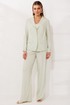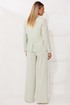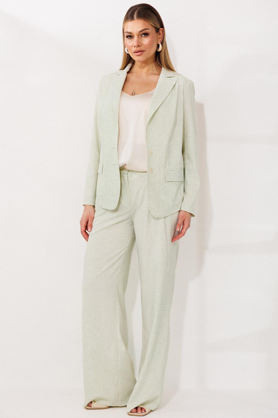 Рукава втачные, двухшовные, с шлицей и пуговицами, создают стильный акцент. Центральная застежка на петли и пуговицы добавляет нотку классики. Брюки палаццо с складками от талии обеспечивают комфорт и легкость, а притачной пояс с шлевками и застежка на молнию в среднем шве завершают образ, сочетая элегантность и практичность. Этот костюм станет отличным выбором для любого мероприятия, подчеркивая ваш утонченный вкус.