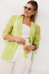 - Тип ткани: Топ, брюки: лен 55%, вискоза 45%. Жакет: вискоза 83%, пэ 17%.