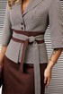 - Тип ткани: Жакет: вискоза 66,7%, полиэстер 22,5%, полиамид 10,8% (костюмное полотно). Юбка: п/э 82%, хлопок 13%, эластан 5% (замша).