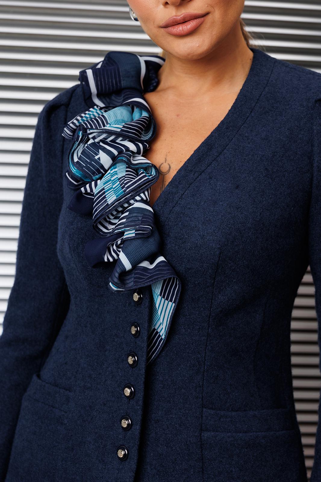 Что делает образ женственным и романтичным? Конечно же силуэты, подчеркивающие женскую фигуру, а также такие ткани как органза, шелк, шифон. Дизайнеры бренда предлагают Вам - жакет из шерсти со съемным шарфом . Данная модель смотрится очень стильно и женственно. Такой жакет может стать основой многих образов. Смело сочетайте его со своими праздничными и деловыми блузами. Жакет полуприлегающего силуэта. По переду и спинке с талиевыми вытачками, на полочках обработаны карманы. Спинка со средним швом. Рукава втачные, двухшовные, сверху по окату со складками. Застежка центральная на петли-пуговицы. Жакет декорирован съемным шарфом, нижняя часть которого застегивается на петли-пуговицы.