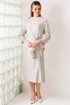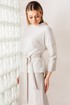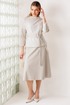 Образ, который стал знаковым - свободный блузон из эластичного полотна в тандеме с юбкой А силуэта из костюмной ткани. Блузон по переду выполнен с нагрудными вытачками выходящими из боковых швов. Спинка со средним швом. Воротник стойка. Юбка на притачном поясе сзади с резинкой. Застежка на тесьму молнию в боковом шве. Комплект дополнен поясом, что позволяет подчеркнуть линию талии. Блузон и юбка на подкладке.