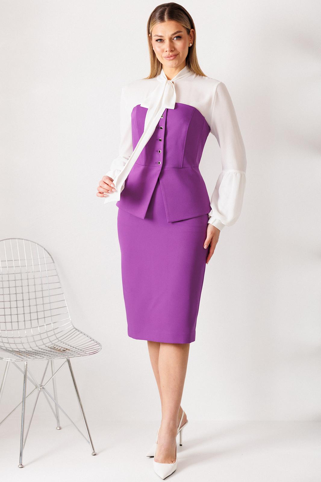 Этот нарядный костюм представляет собой элегантное и утонченное решение для особых случаев. Костюм состоит из корсета и юбки. Топ-корсет прилегающего силуэта с регилином по рельефам по переду и спинке, который обеспечивает дополнительную жёсткость и посадку на фигуре. Застёжка центральная бортовая на 6 петель и пуговиц. Низ переда фигурной заострённой формы, что подчёркивает элегантный силуэт. Модель идеально подходит для создания строгих, утонченных образов и может использоваться как в качестве элемента вечернего наряда, так и для повседневных образов с более нейтральными деталями. Наденьте его с нашей юбкой - это беспроигрышный дуэт, где игривость и строгость подчеркивают друг друга. Юбка прямая, зауженная к низу, сверху на притачном поясе. Застежка на тесьму-молнию в среднем шве, который переходит в шлицу. Костюм на подкладке.
