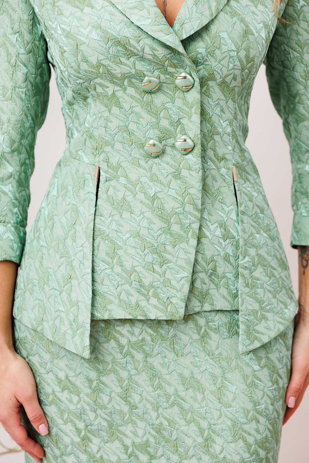 Что сделает комплимент Вашей фигуре? Правильный силуэт! Костюм от бренда Мода-Юрс подчеркнет все изгибы и достоинства Вашей фигуры. Жакет полуприлегающего силуэта с отрезной баской фигурной формы и воротником шалька. Перед с рельефами, выходящими из проймы. Спинка со средним швом. Рукав втачной, двухшовный. Юбка прямая, зауженная к низу, сзади со средним швом, переходящим в шлицу. Застежка на тесьму-молнию. Пояс притачной, по бокам с резинками. Жакет и юбка на подкладке.