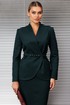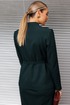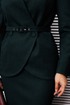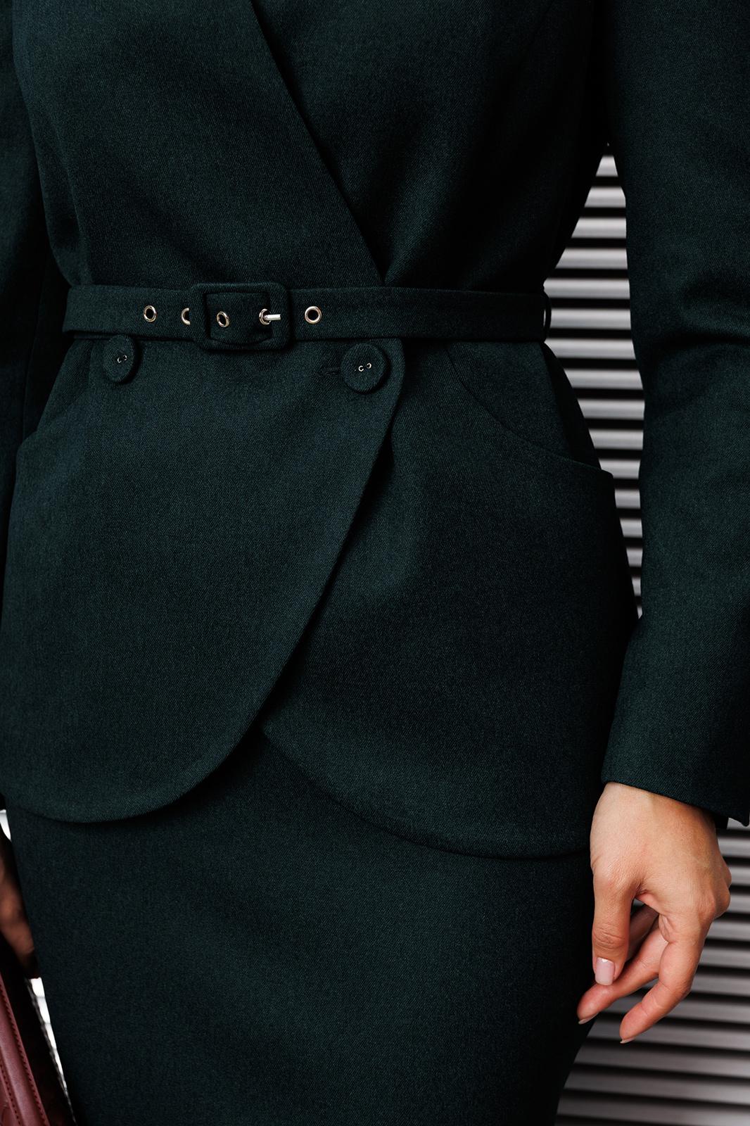 Представляем костюм женский двойку. Жакет полуприлегающего силуэта с двухбортной застёжкой на одну пару обтяжных,из основной ткани, пуговиц и одной потайной. Край борта фигурной формы,придающей динамичность жакету. На полочке выполнены фигурные рельефы, которые дополнены функциональными карманами, гармонично вписывающимися в общую структуру изделия. Спинка со средним швом и вертикальными рельефами из проймы. Воротник с цельнокроенной стойкой, что придает жакету элегантный и строгий вид. Рукава двухшовные, со шлицей в локтевом шве на одну пуговицу,также обтяжную из основной ткани. Жакет дополнен шлёвками и съемным поясом из основной ткани с пятью блочками на обтяжную пряжку, чем придает дополнительный акцент на талии.
