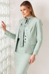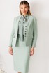 Застежка на тесьму молнию в среднем шве, который переходит в шлицу. Жакет и юбка на подкладке.