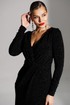 Блеск софитов, огни салютов, игривые пузырьки в бокале - и Ваше сияние обеспечено нашим вечерним платьем! Это действительно озорно, игриво, празднично! И, как ни крути, приковывает взгляды! Представленное платье приталенного силуэта. Спинка с талиевыми вытачками. Перед отрезной по линии талии. Лиф с эффектным V-образным вырезом и узлом в области талии. Юбка на запах. Рукав полуреглан, присборенный на резинку в нижней части (по шву). Платье на подкладке. Материал платья - тонкий трикотаж с блеском. Хорошо тянется. Длина рукава (полуреглан): 68 см.