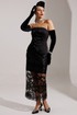 Позвольте представить изящное продолжение нашей новогодней коллекции - юбку из черного гипюра. Юбка состоит из двух слоев: верхняя часть выполнена из гипюра, заужена к низу и имеет длину миди, дополненную каймой по низу. Разрез и молния расположены сзади, обеспечивая легкость в носке и стильный вид. Нижняя юбка служит подкладкой и выполнена в мини-длине, что создает эффектный контраст с верхним слоем. Соберите идеальный ансамбль, дополнив юбку корсетом и бархатным жакетом. Вместе они создают законченный образ, одновременно смелый и невероятно женственный.