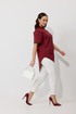 Стильный женский костюм, состоящий из блузы и брюк.