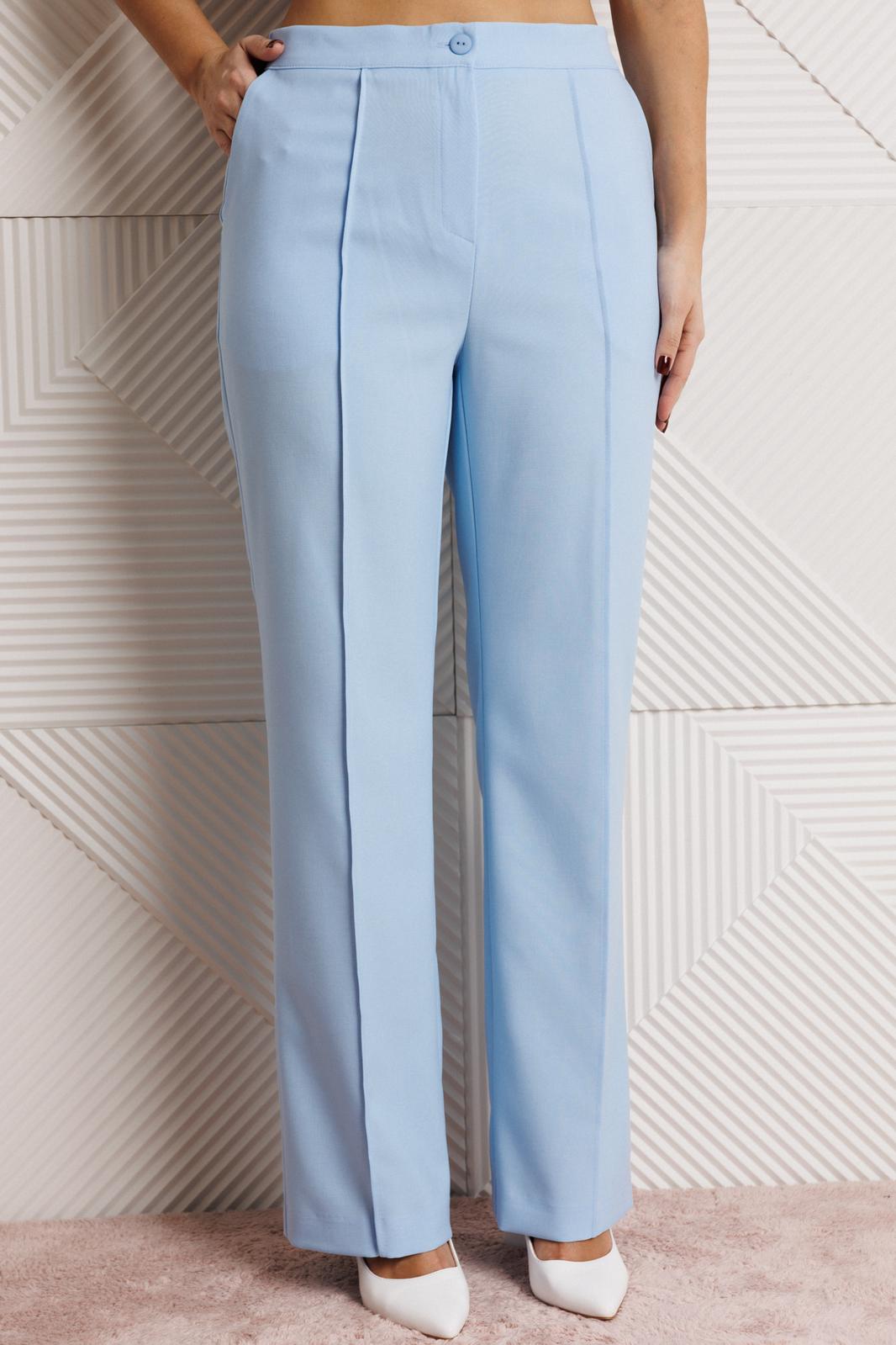 Брюки свободного кроя с высокой посадкой. В боковых швах функциональные карманы. Верхний срез брюк обработан притачным поясом с резинкой в боковых швах. Застежка в брюках на тесьму-молнию.