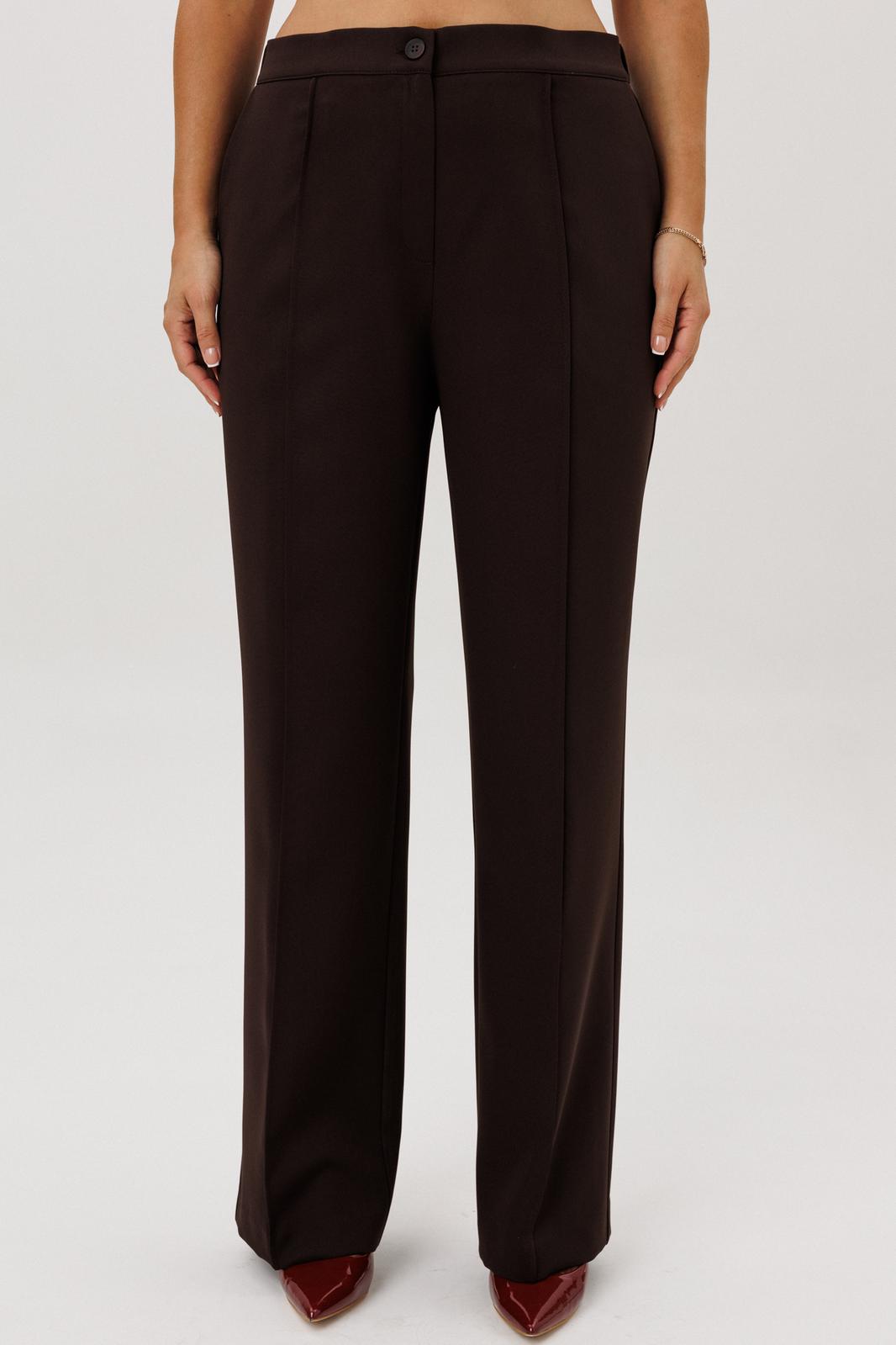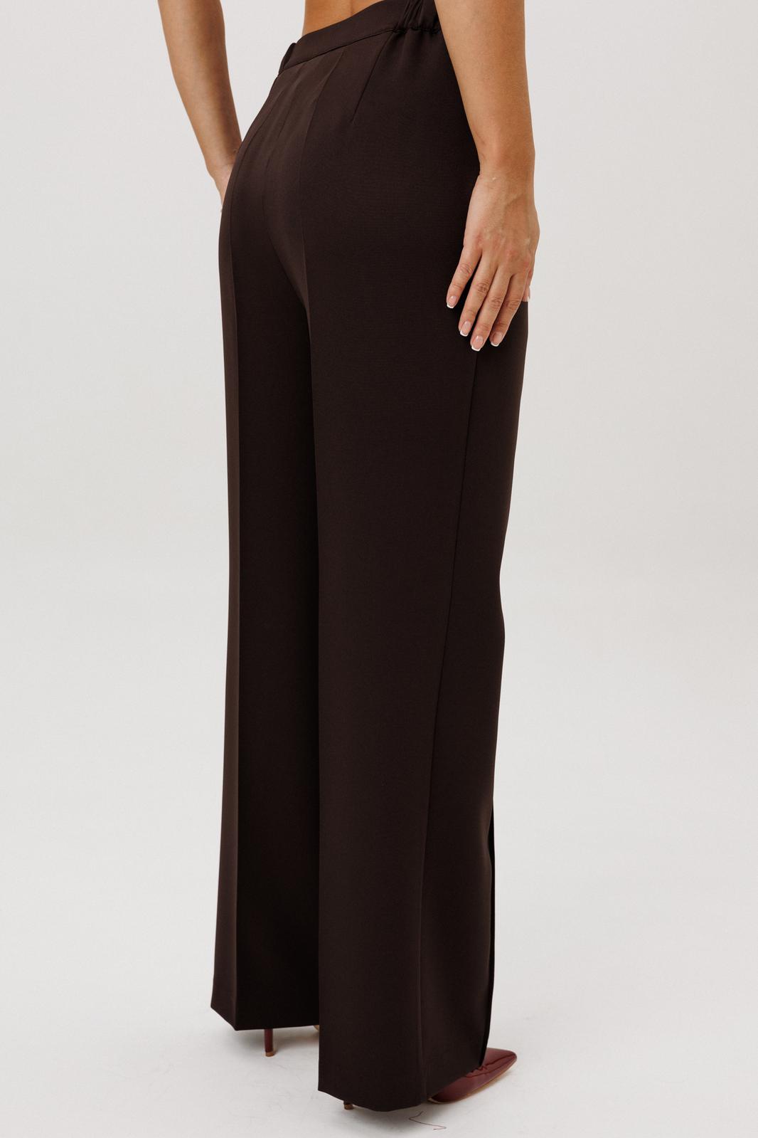 Брюки свободного кроя с высокой посадкой. В боковых швах функциональные карманы. Верхний срез брюк обработан притачным поясом с резинкой в боковых швах. Застежка в брюках на тесьму-молнию.