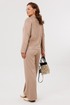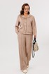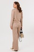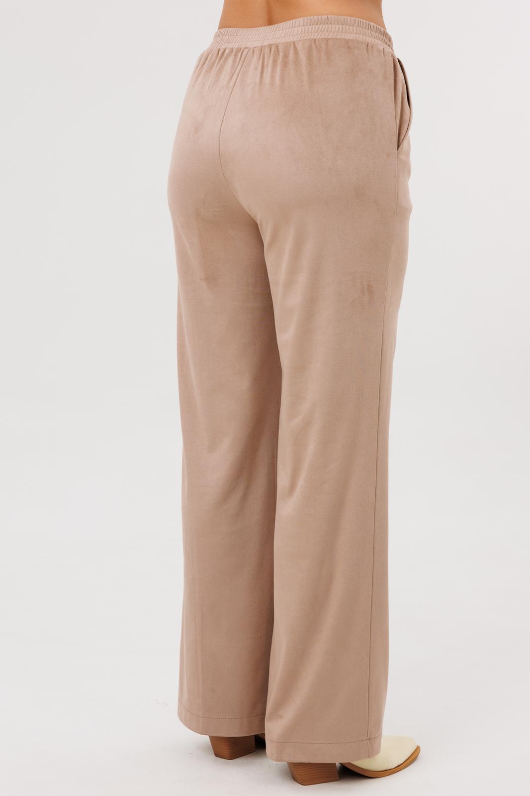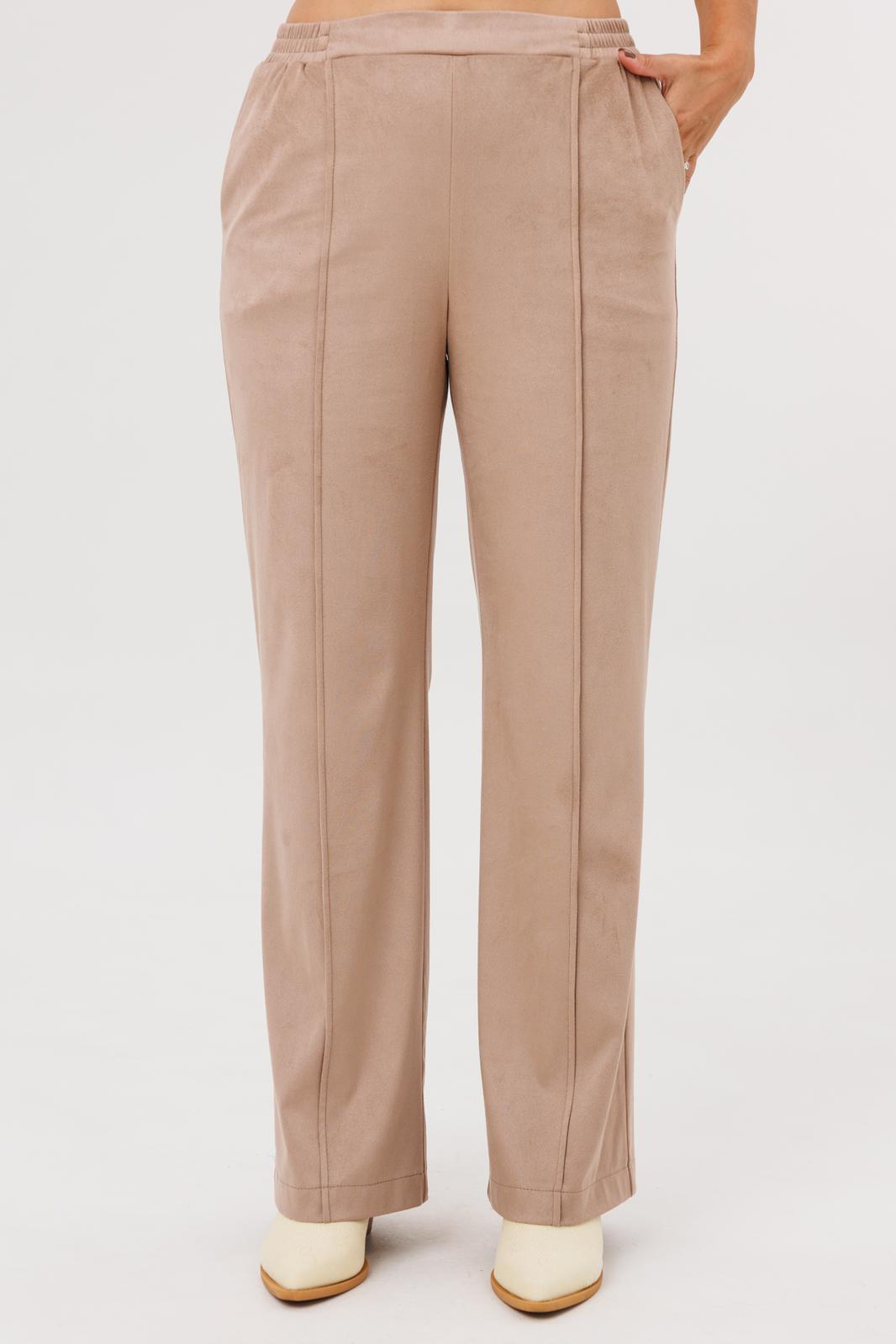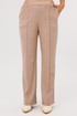 Брюки прямого кроя с высокой посадкой. По передним половинкам вертикальная застроченная складка на 0,5 см, в боковых швах наклонные карманы. Верхний срез оформлен поясом с эластичной резинкой.