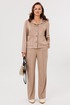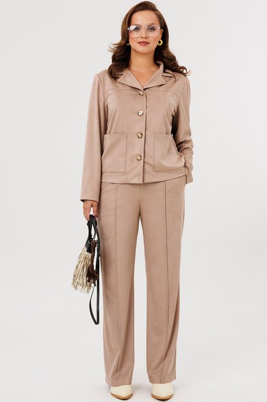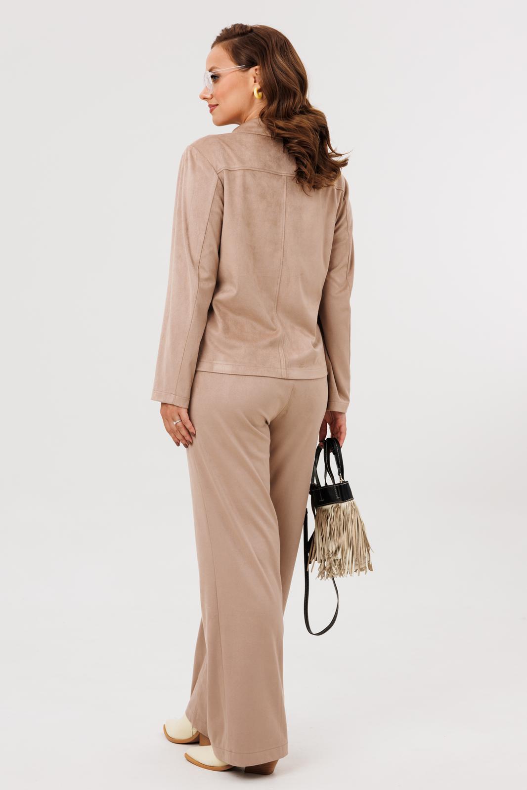 Стильный женский костюм, состоящий из жакета и брюк, выполненный из костюмной ткани «Замша» (тянется). Полотно мягкое, очень комфортное.