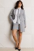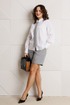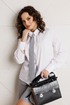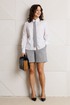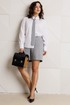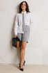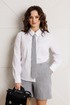Стильный женский комплект, состоящий из жакета, шорт, блузы и модного аксессуара – галстука.