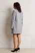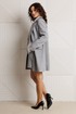 Жакет прилегающего силуэта на подкладке, выполненный из костюмного полотна в тонкую полоску (чуть тянется). По переду выточки, выходящие из центра груди до низа жакета, функциональные прорезные карманы в рамку с клапаном. Застежка центральная на петли-пуговицы. Горловина оформлена воротником пиджачного типа с лацканами. Спинка со средним швом. Рукава втачные, двухшовные.